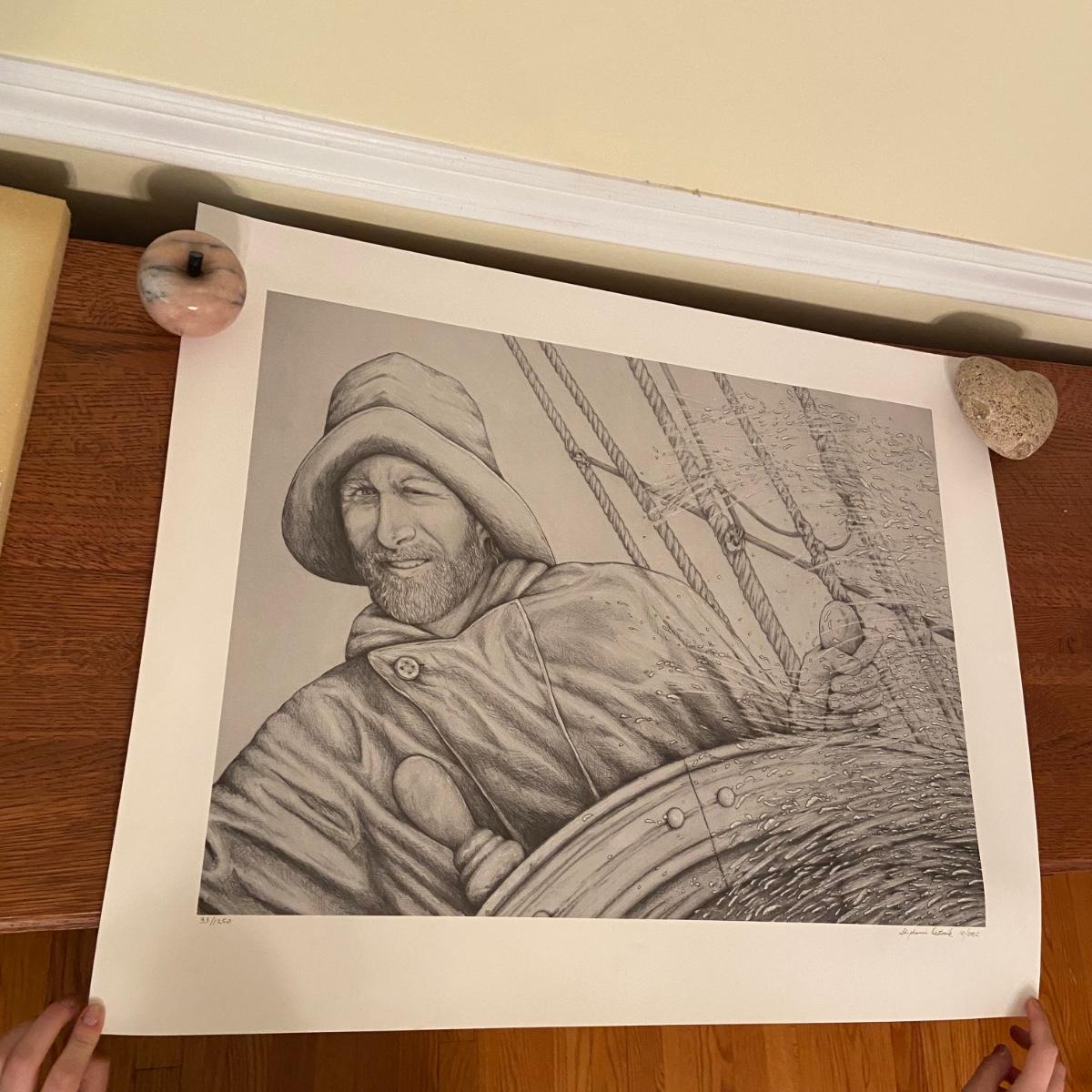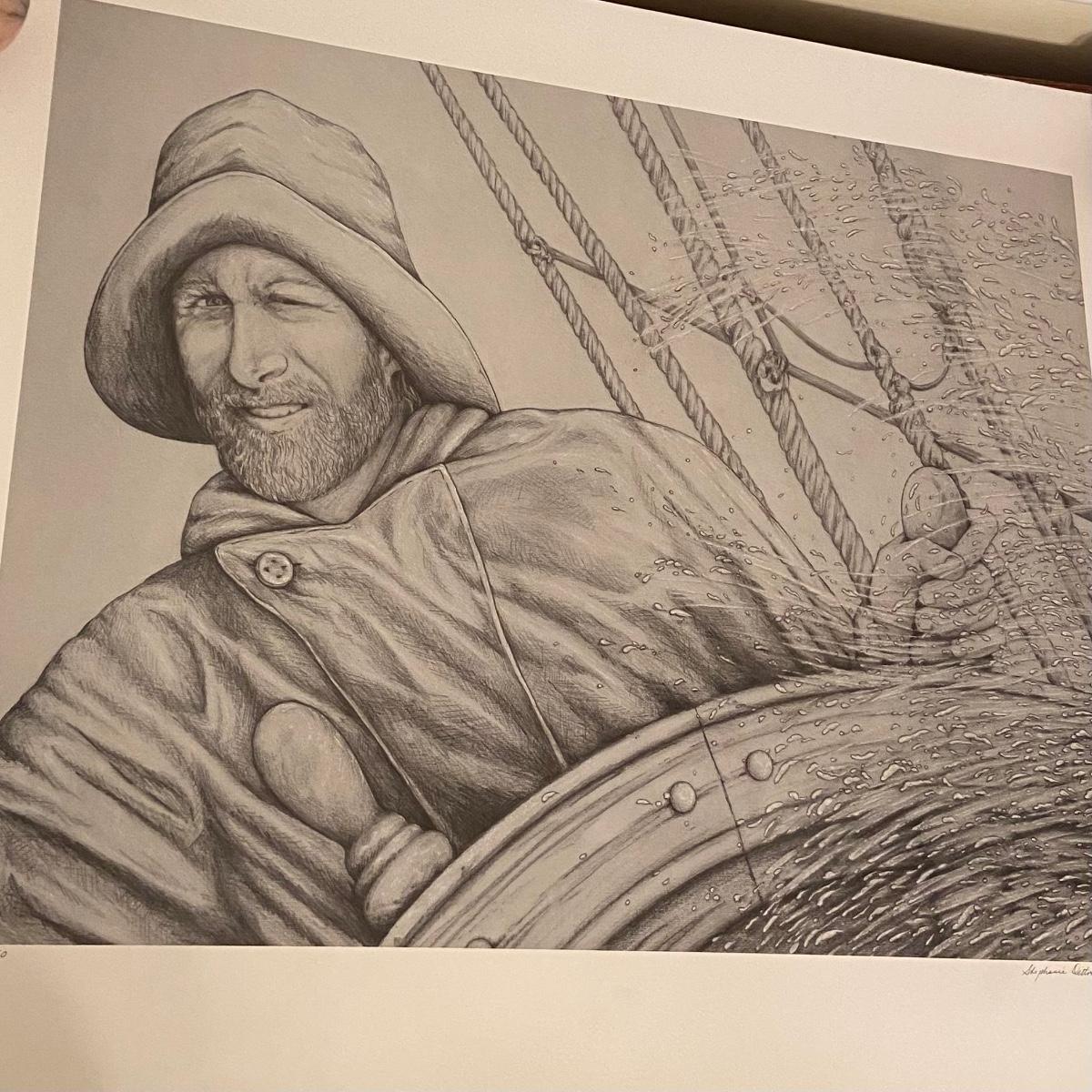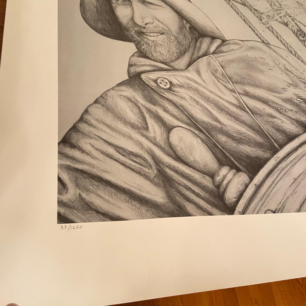 Pencil Drawing Print of Man at Sea, Signed & Numbered (PB-BM)