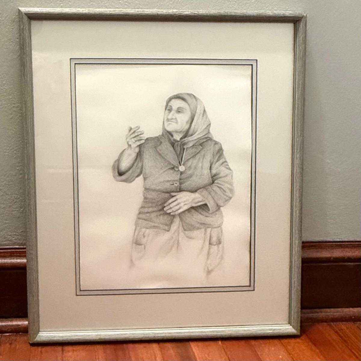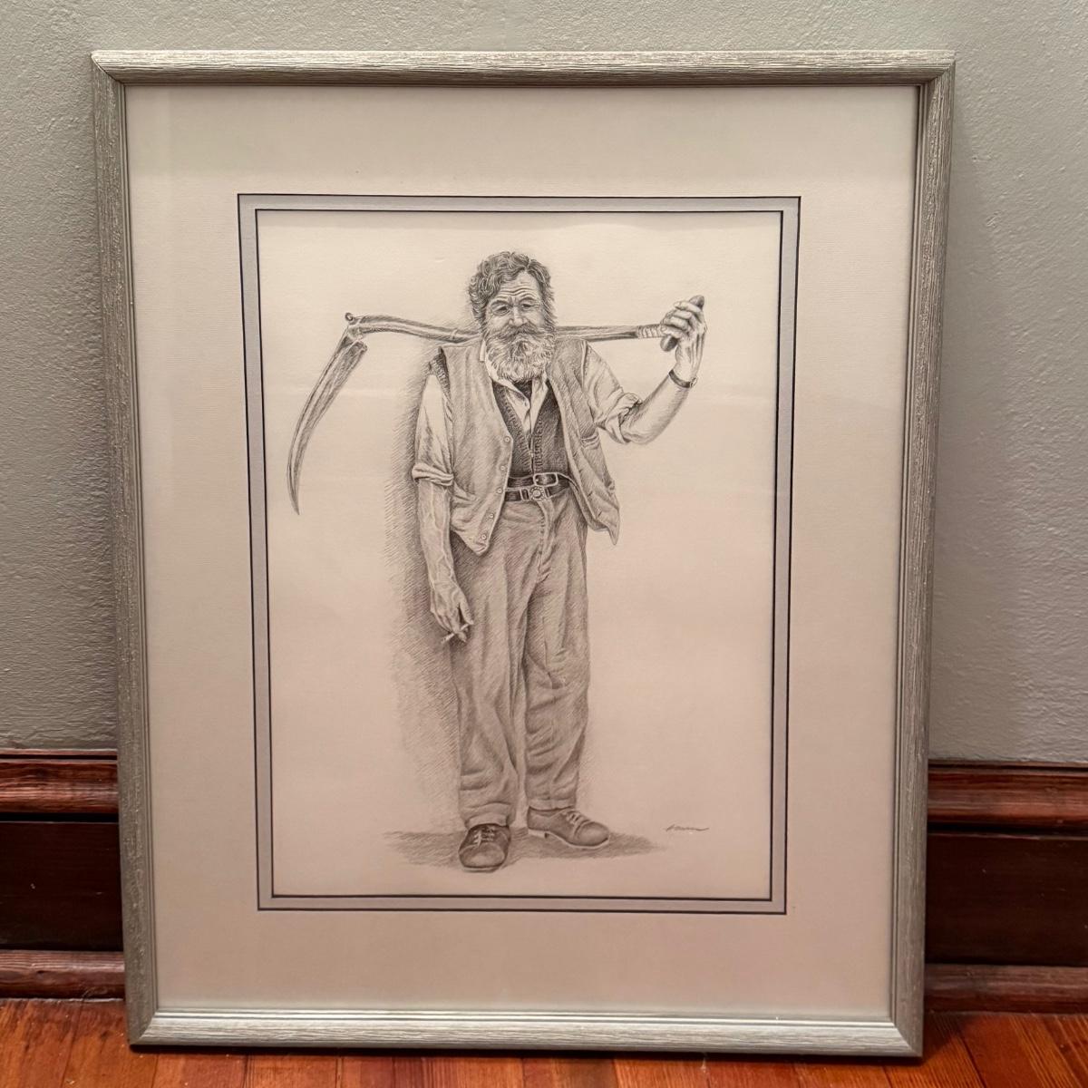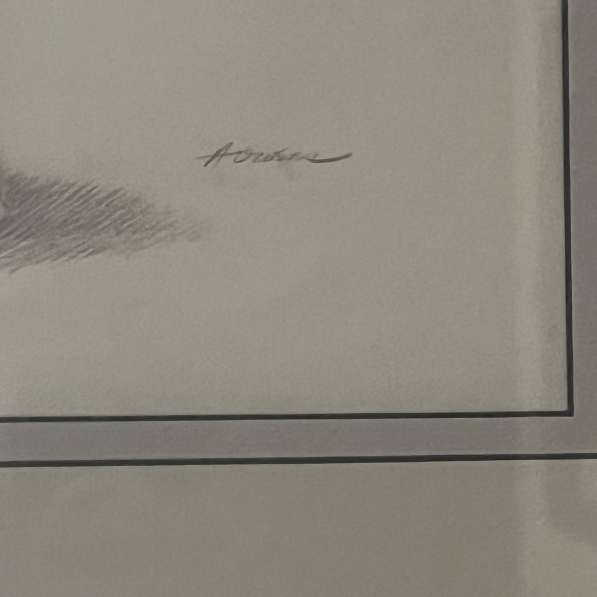 These two wooden framed signed pencil drawings are matted and under glass. Largest frame measures 20” x 25”H.