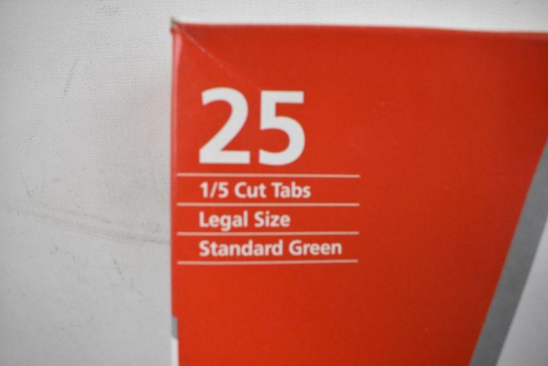Pendaflex 25x 1/5 Cut Tabs, Legal Size, Standard Green - New