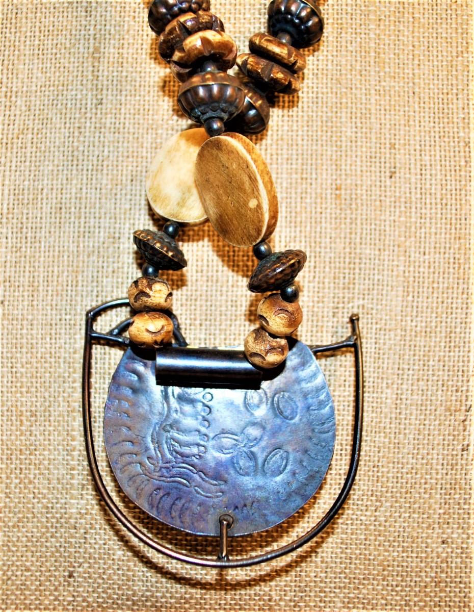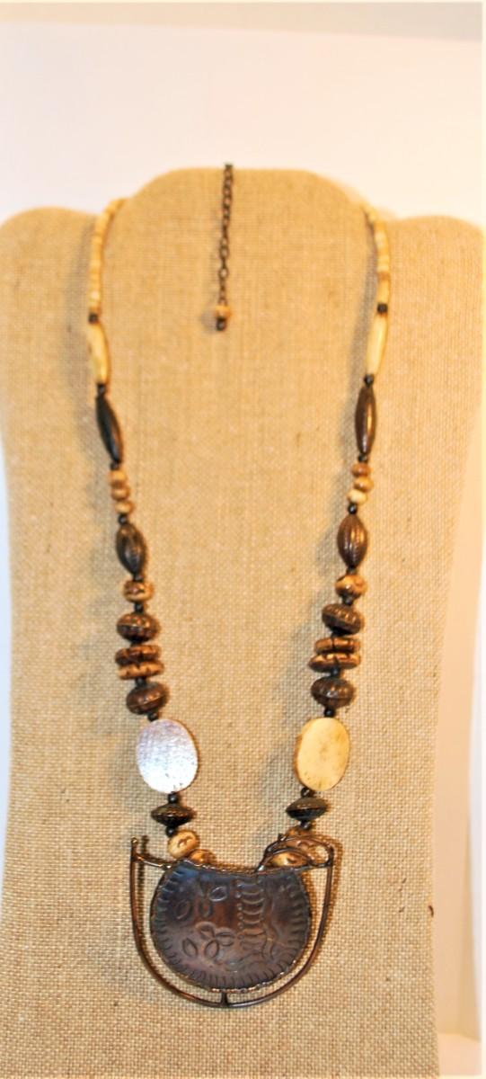 PENDANT Design Necklace on a Heavy Beaded Chain 28" L