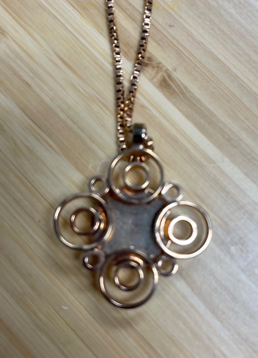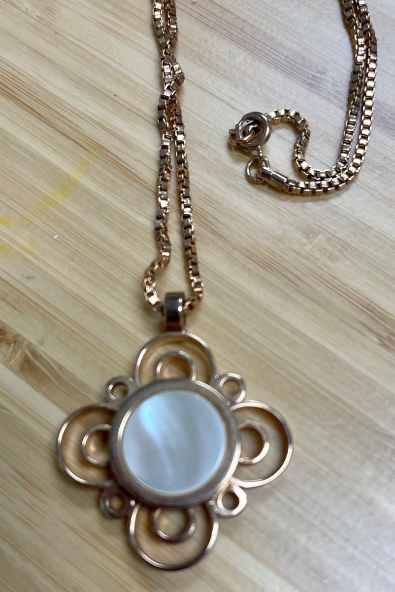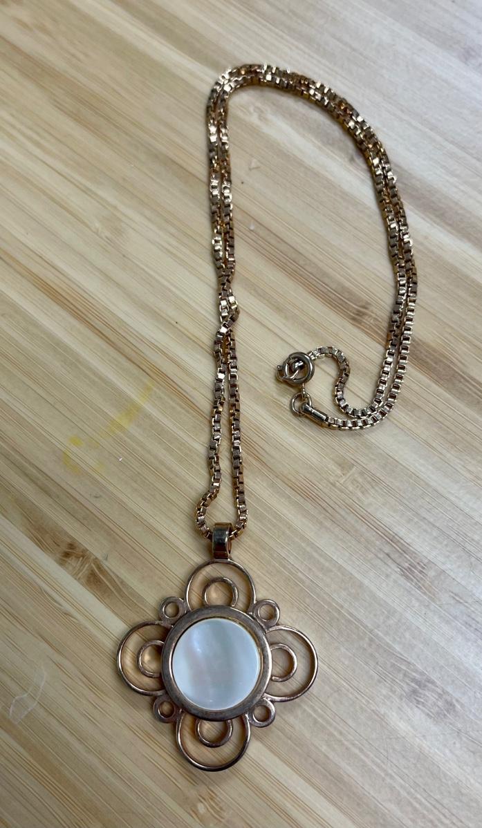 Pendant Necklace 18" chain, gold-tone with pearl-like stone center