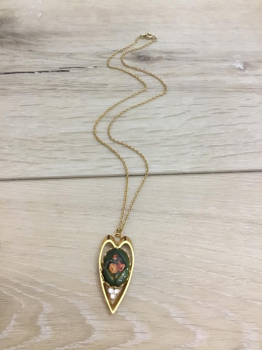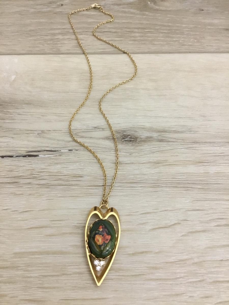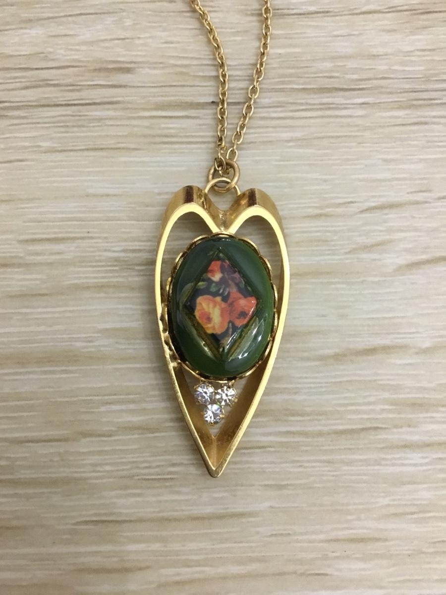 Pendant, necklace, vintage, floral, heart, gold, toned, chain necklace
