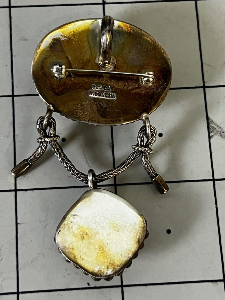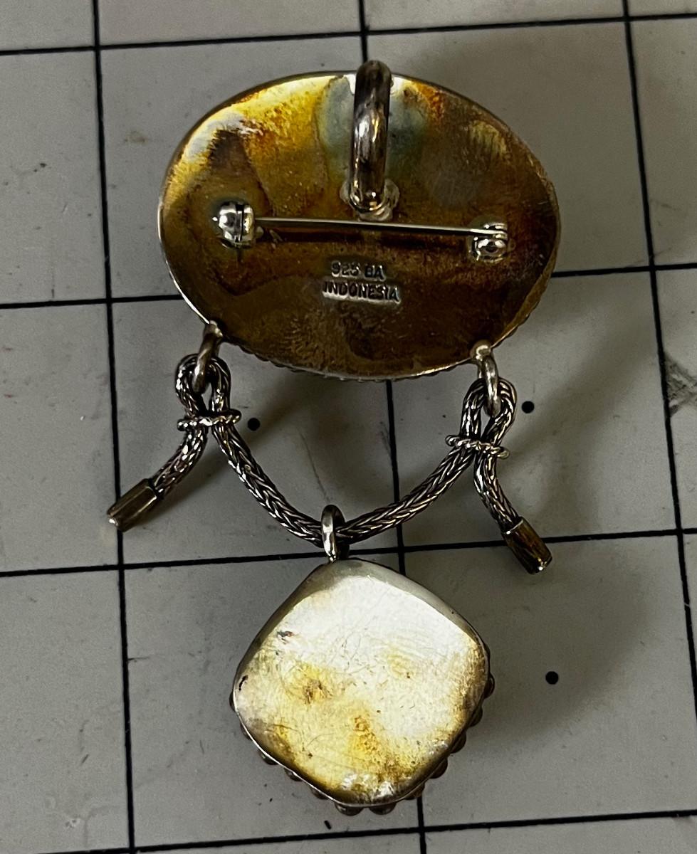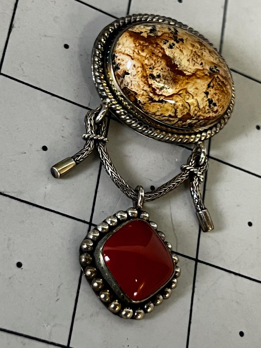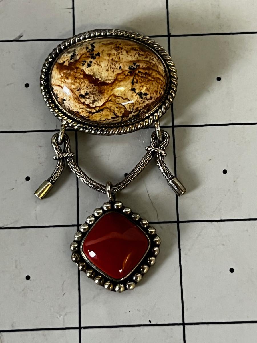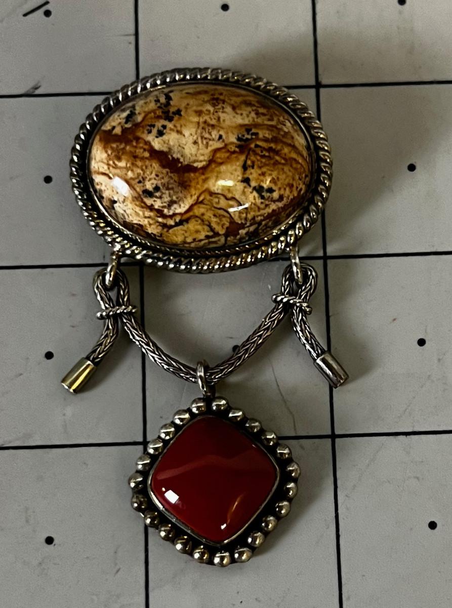 Pendant Pin; Sterling Silver with Agate and Carnelian Stone