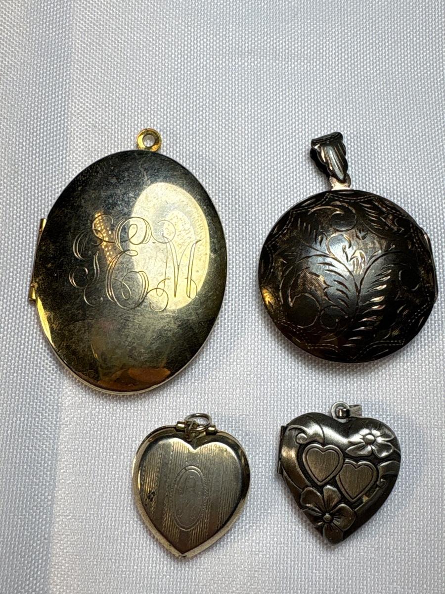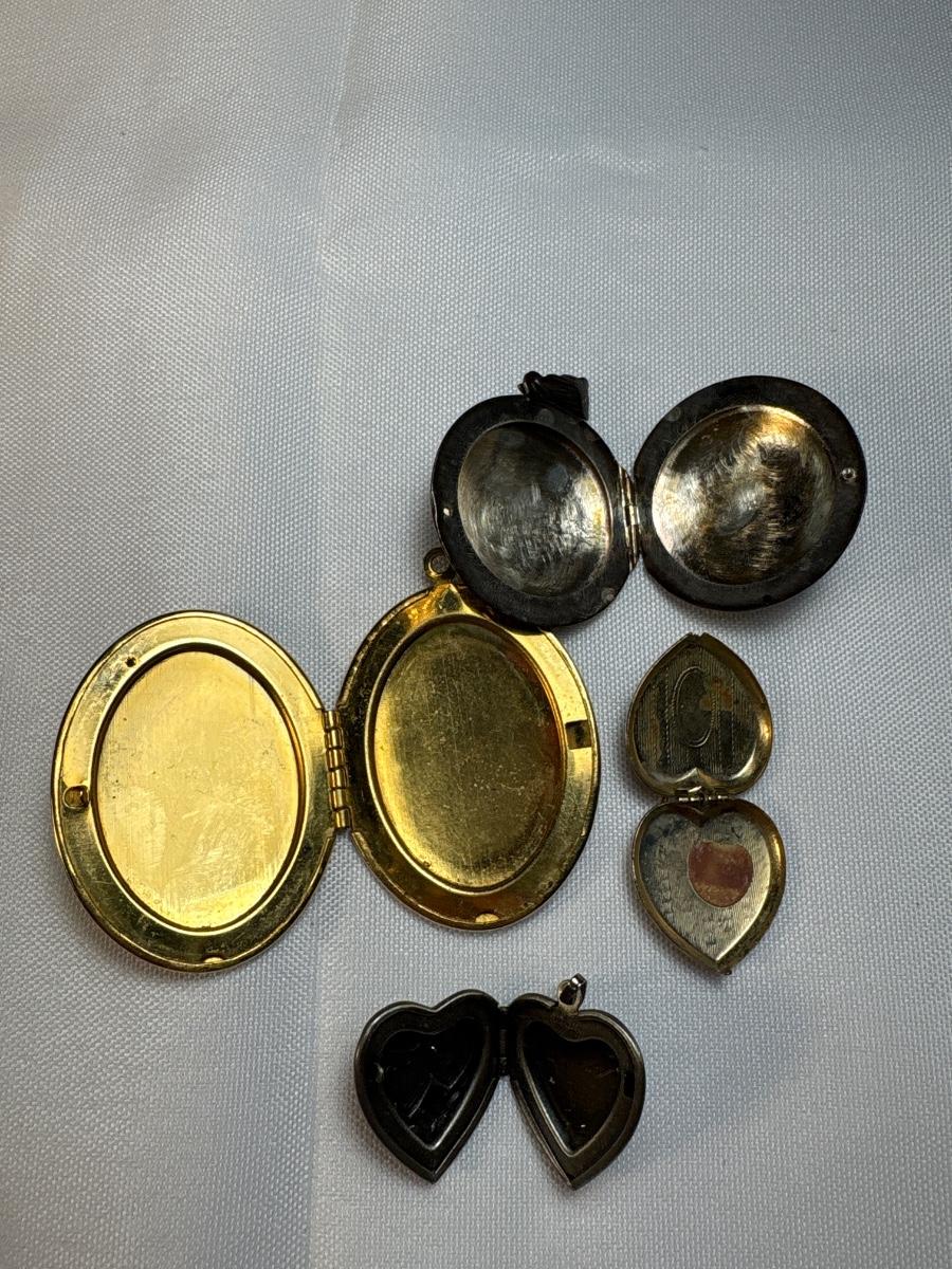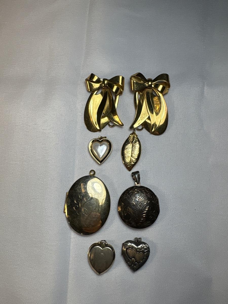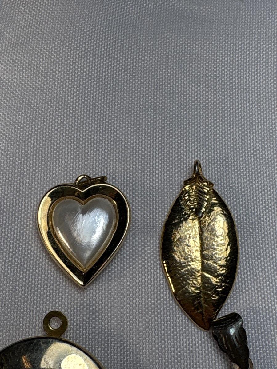Trifari heart/pearl pendant, two silver and two gold lockets