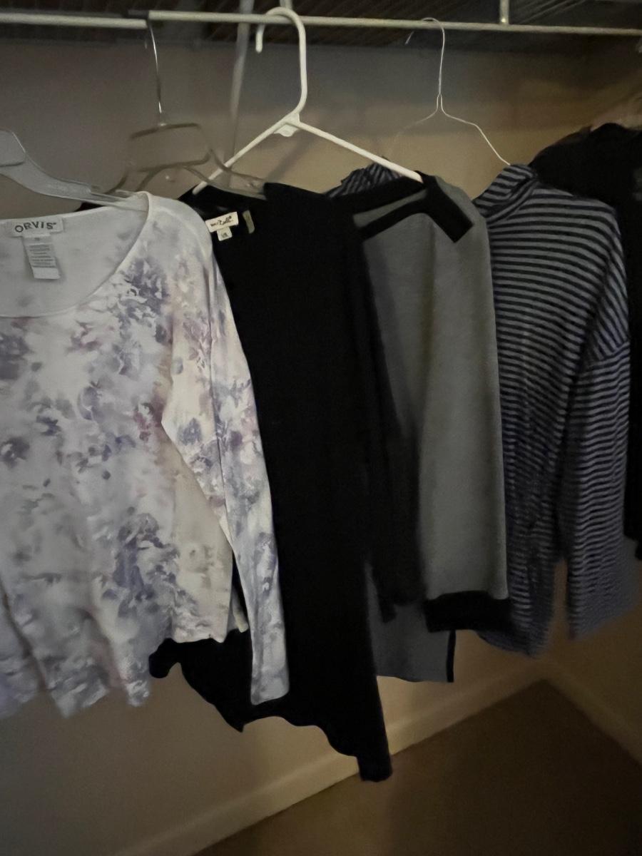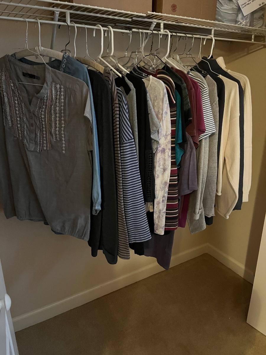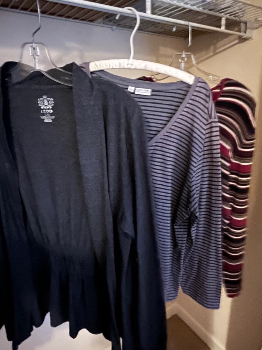 There are twenty two items in this grouping. Sweaters, tops and one hoodie in sizes S-L.