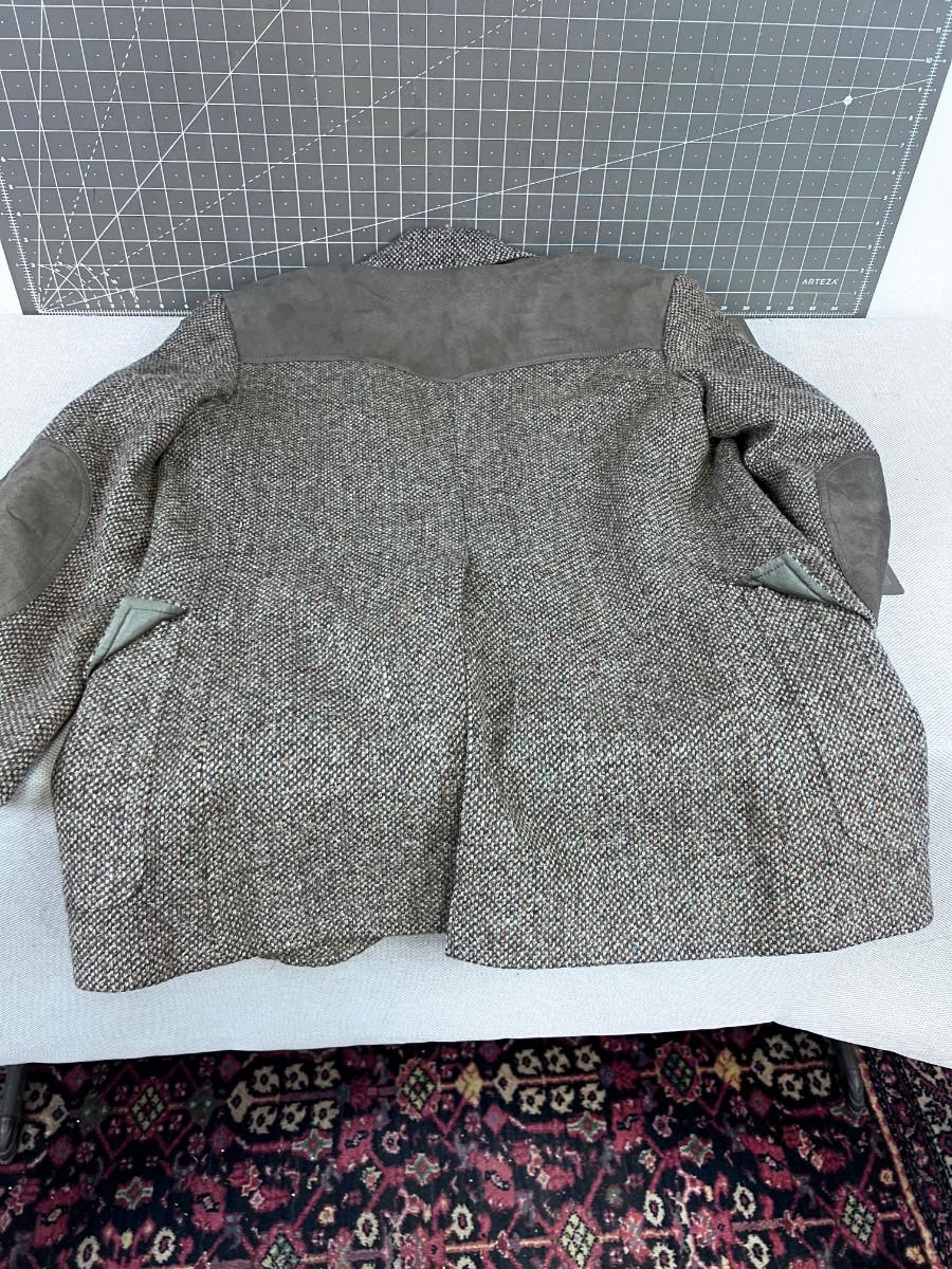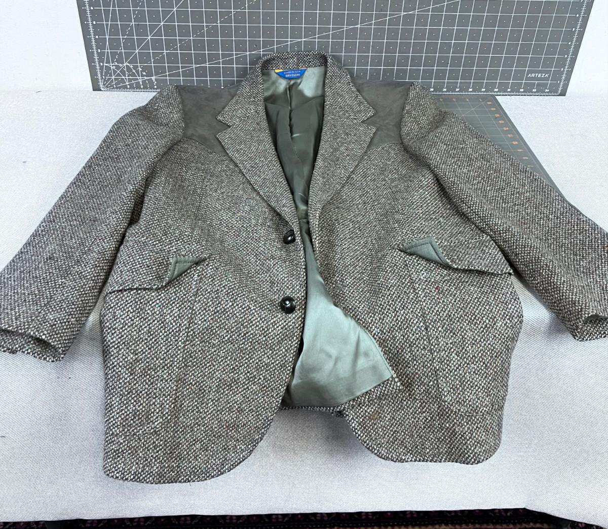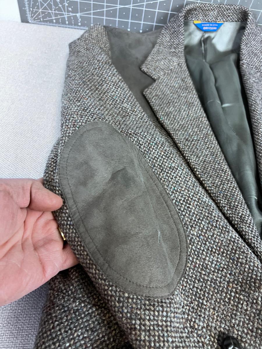 Pendleton Wool Heiring Bone Blazer with Leather Shoulders & Elbows., Green Hue