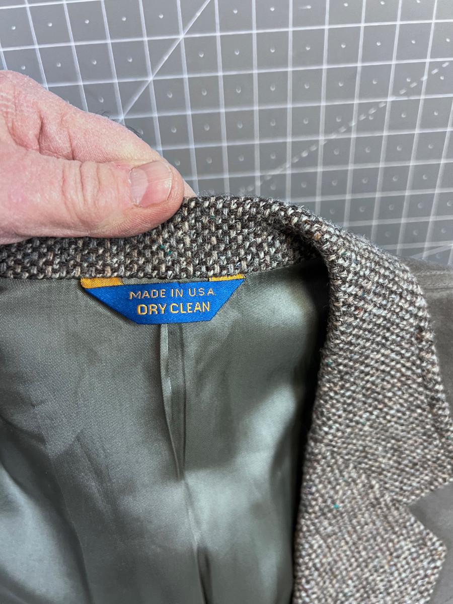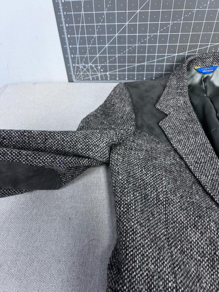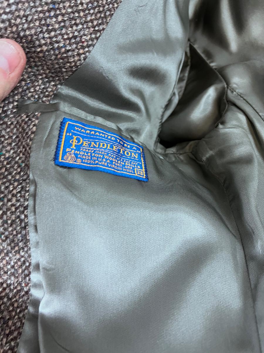 Pendleton Wool Heiring Bone Blazer with Leather Shoulders & Elbows., Green Hue