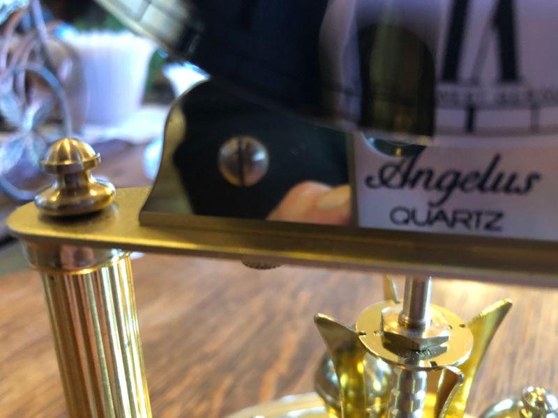 ANGELUS ANNIVERSARY BRASS CLOCK, BATTERY OPERATED GOOD WORKING CONDITION.