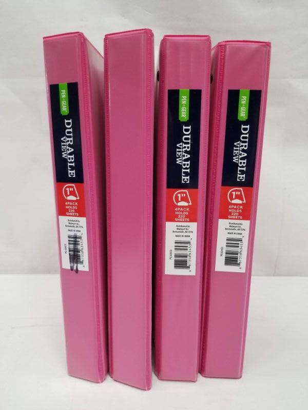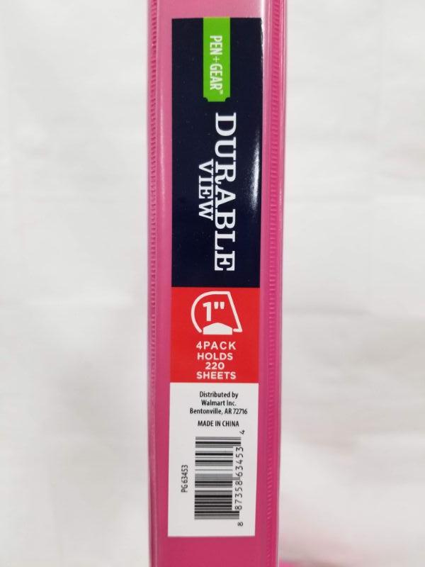 PenGear Durable View 3 Ring 1" Binders - D-Ring, Pink, Qty 4 - New