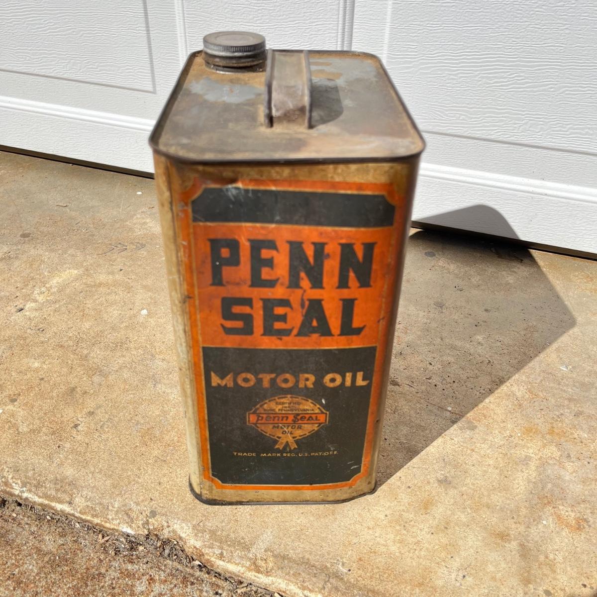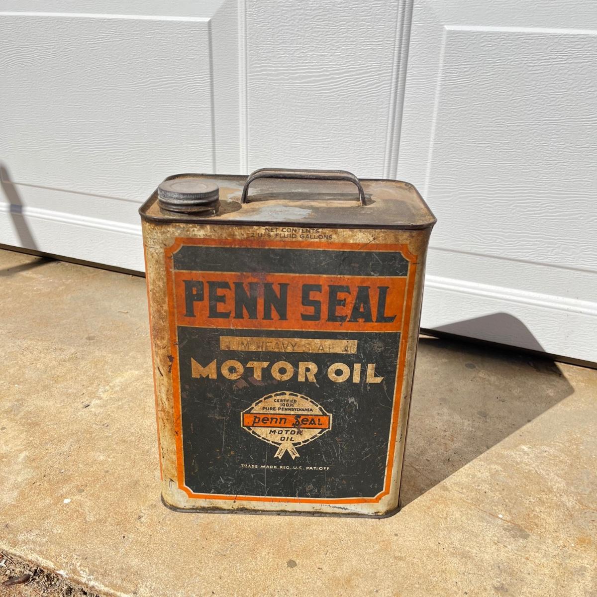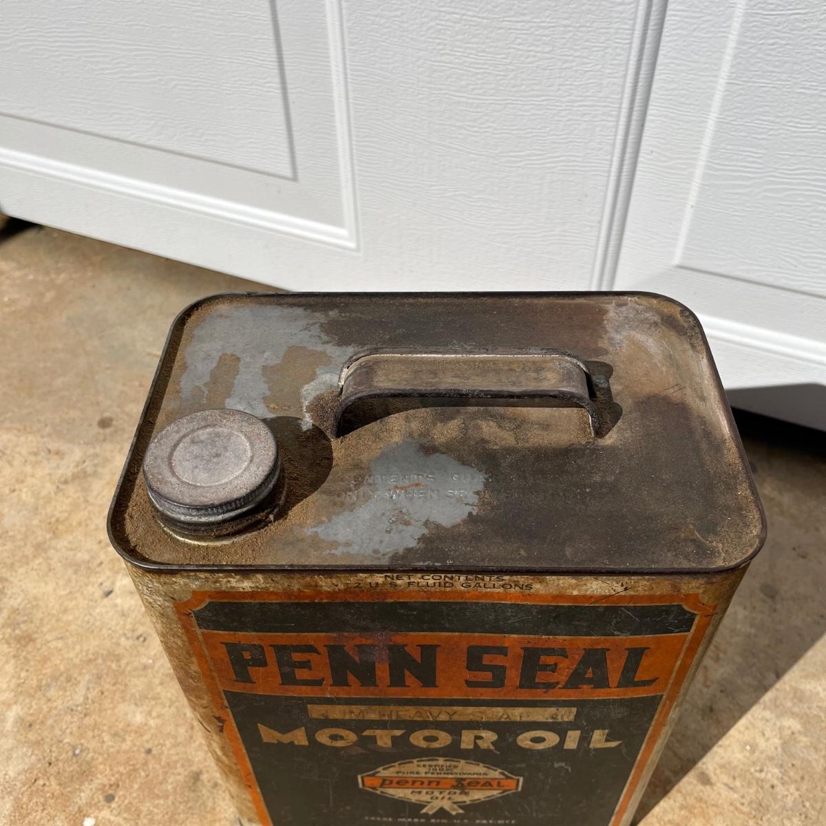 Lot includes a Penn Seal two gallon motor oil can. Can has scratches and dents, see pictures.