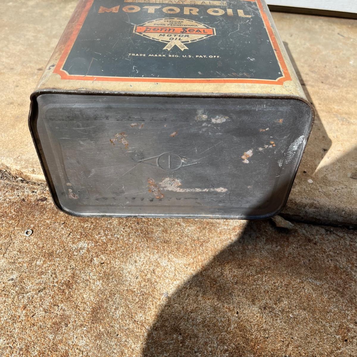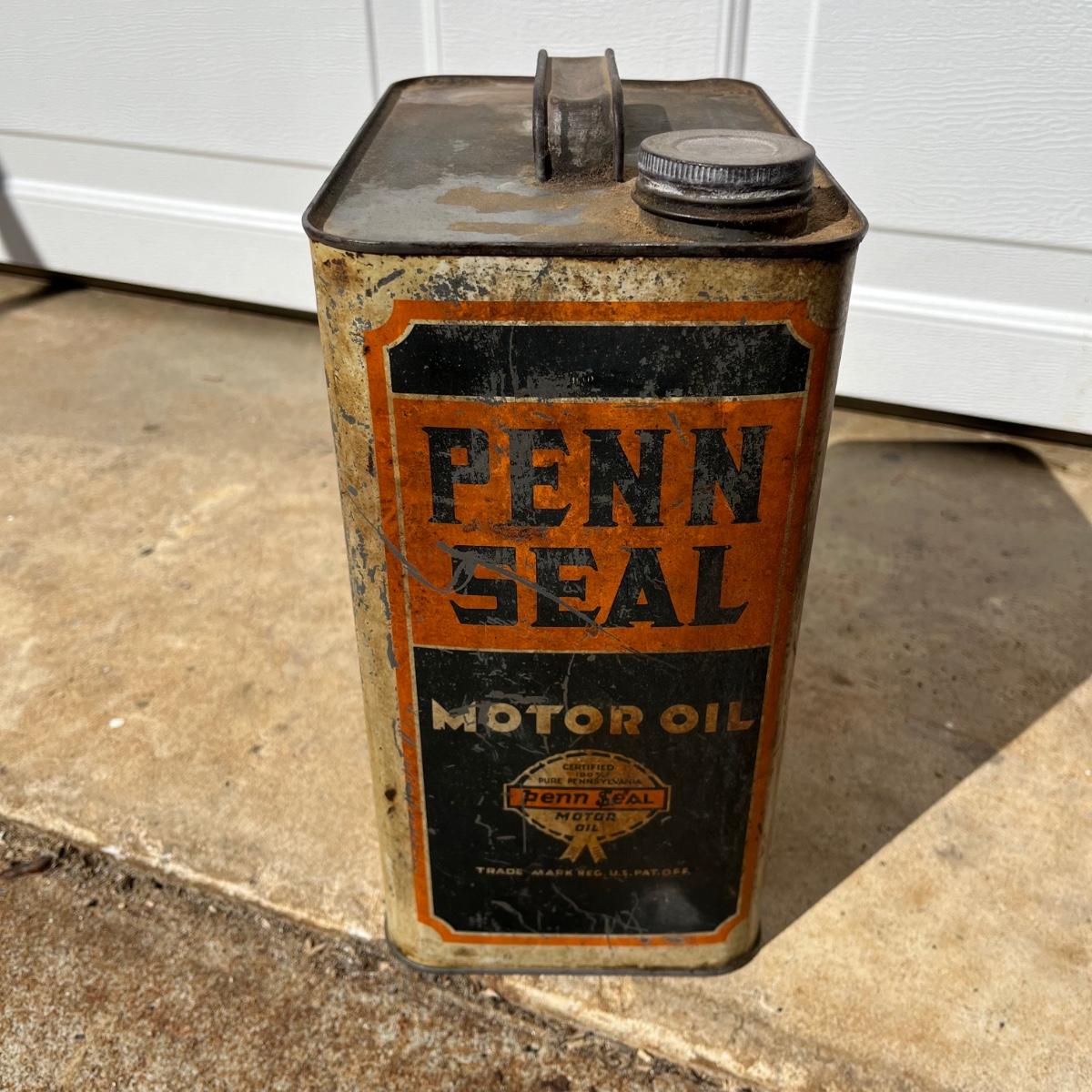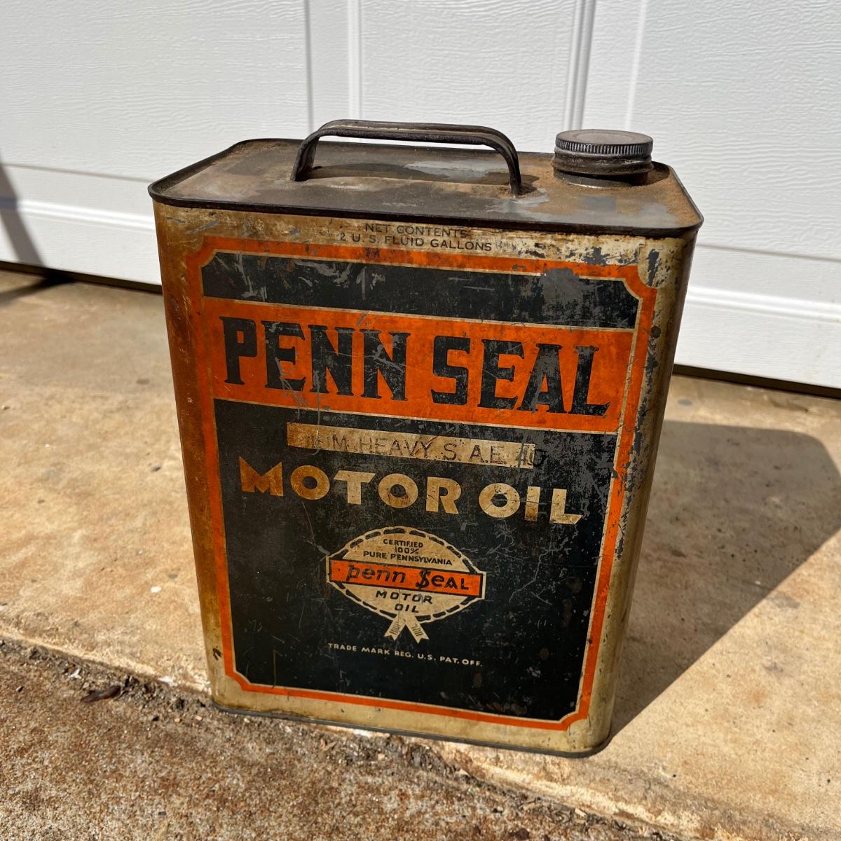 Lot includes a Penn Seal two gallon motor oil can. Can has scratches and dents, see pictures.
