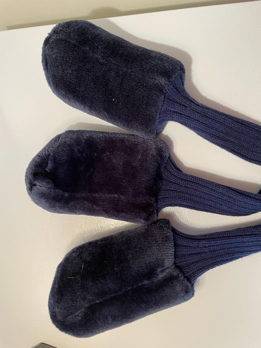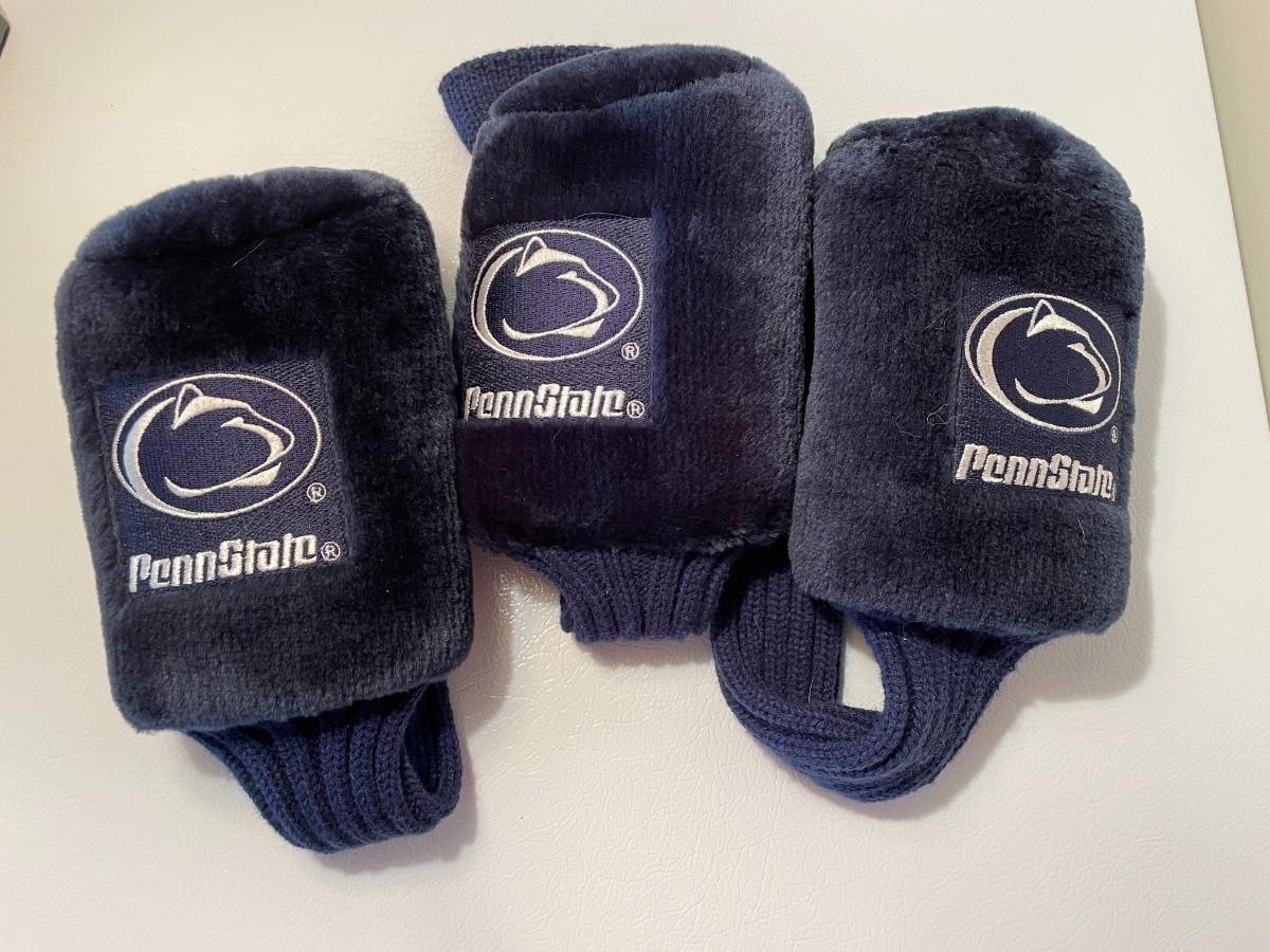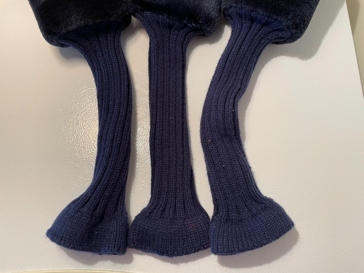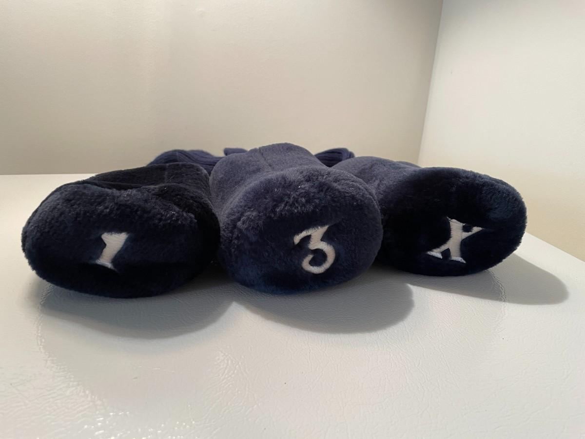 There is a 1 wood cover, 3 wood cover, and X driver cover in this never used golf club head covers.