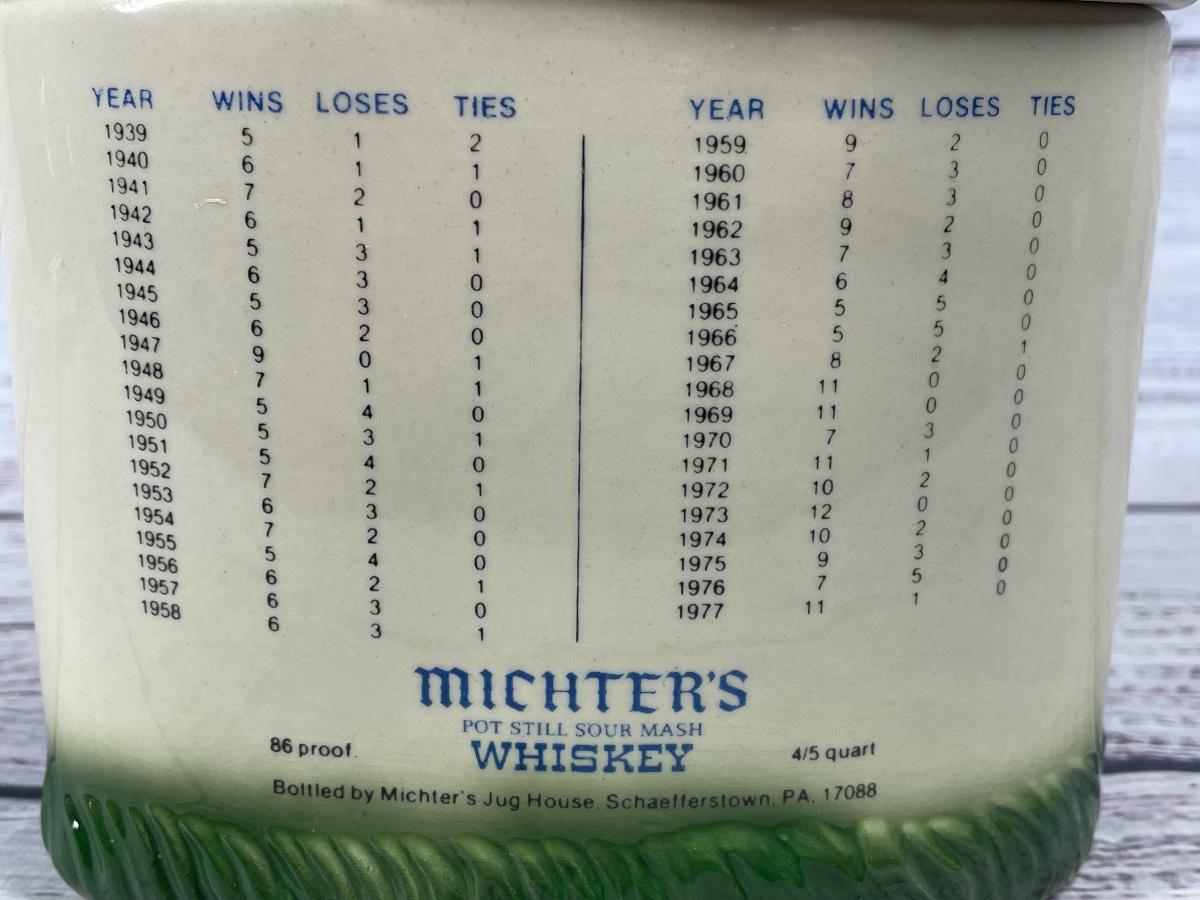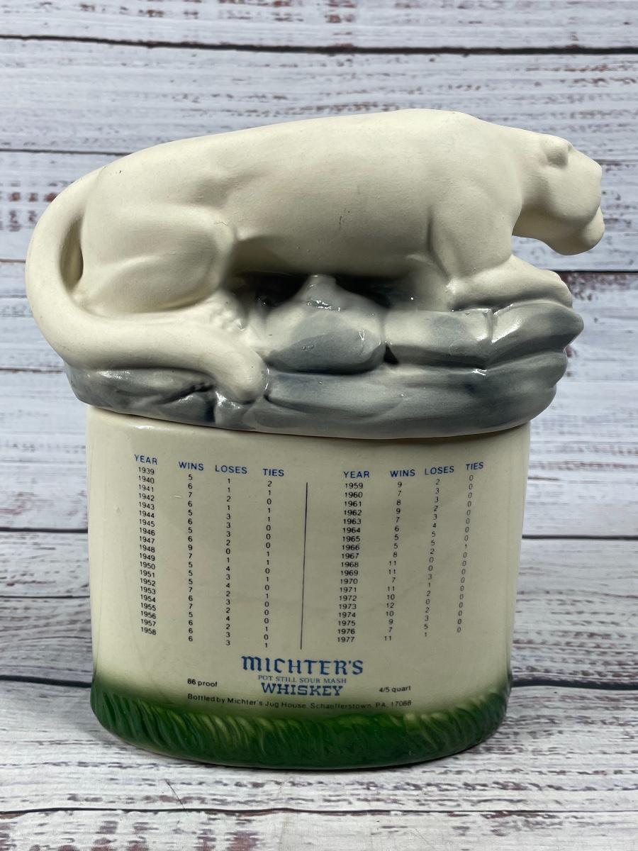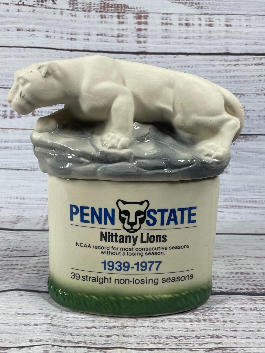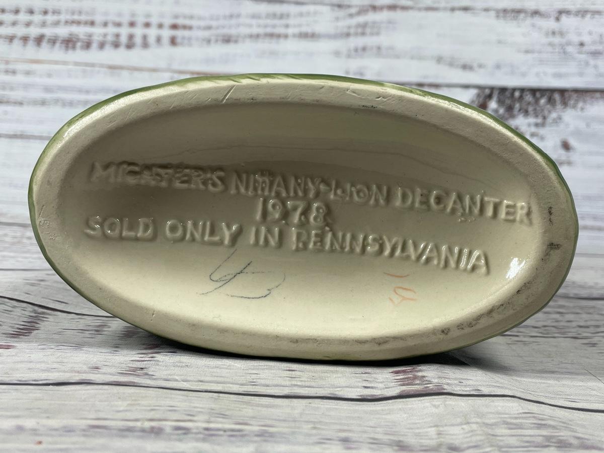 Item is in great condition but there is some scratches on the bottom. This decanter was sold only in Pennsylvania. The back of the item shows the year and how many wins, loses, and ties that Penn State got throughout 1939-1977.