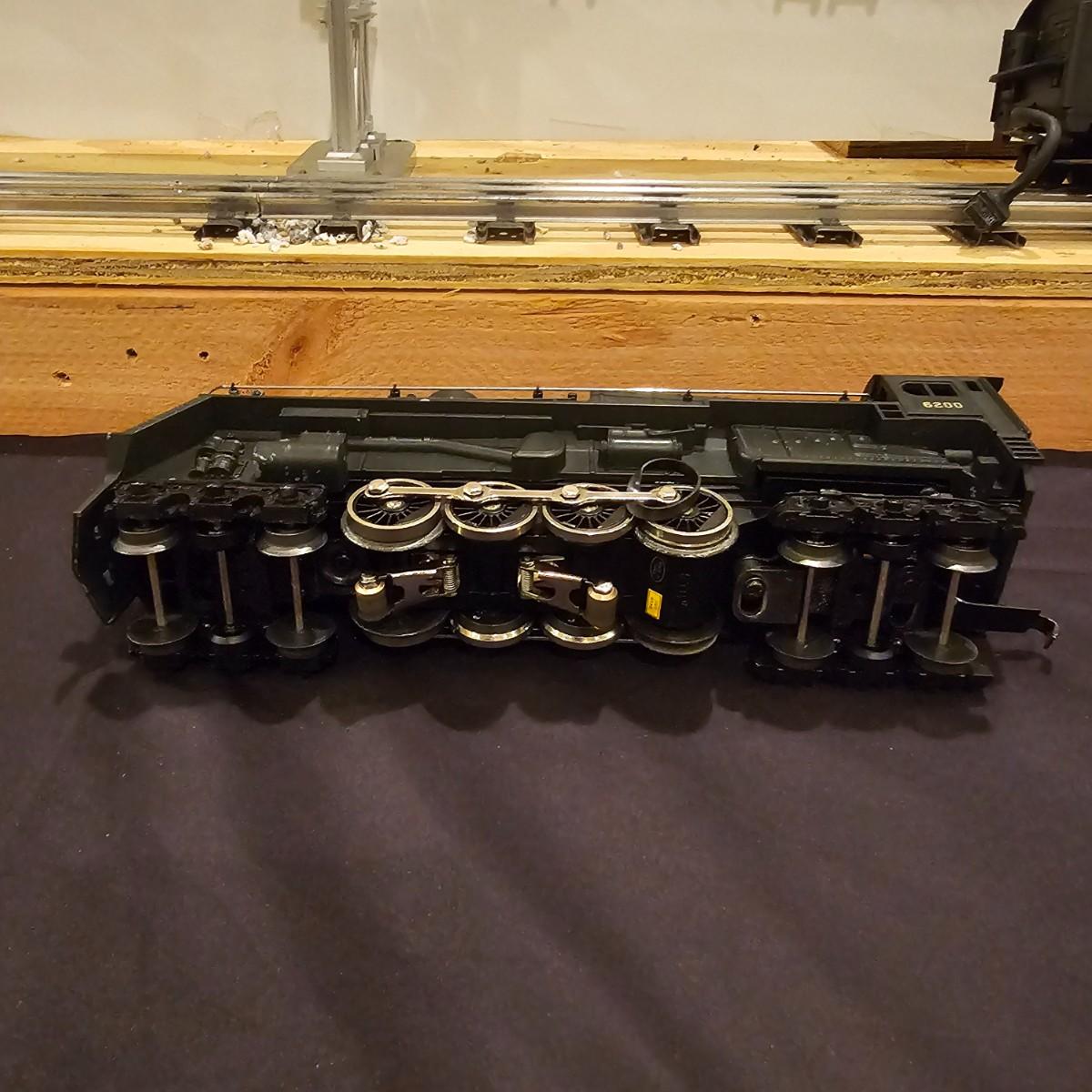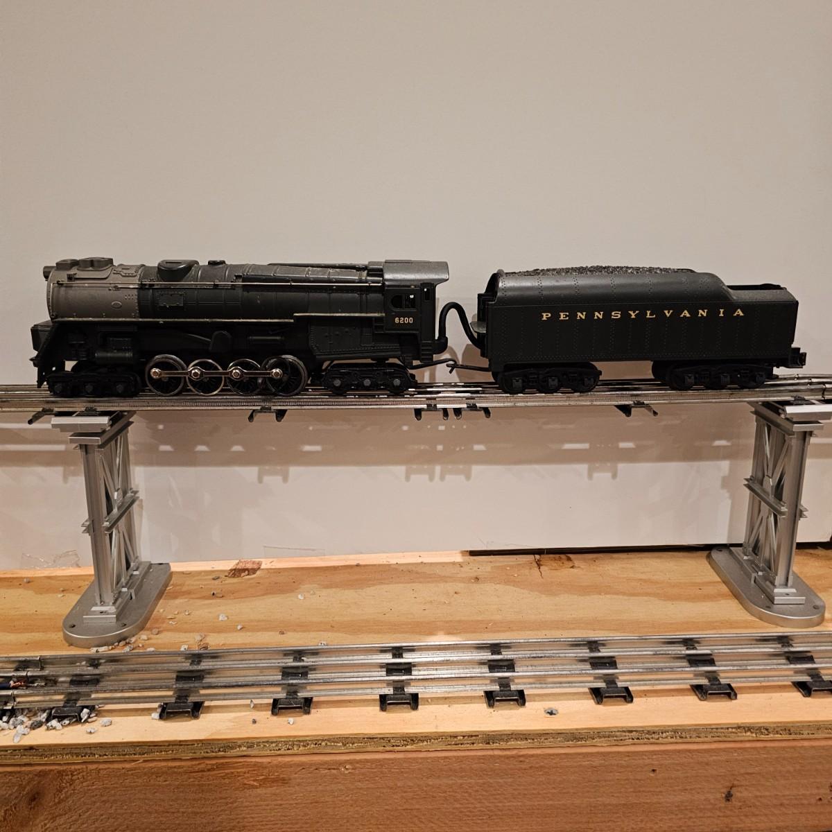 Part of the Pennsy motive power line up, this die-cast beauty #6200 has lots of perks. Measuring 20.5" x 3"x 3.5"H, this engine has lots of power to pull many a consist or passenger train. Equipped with Proto sound & smoke, includes bell, whistle, chuff and lights for a realistic trip around your layout. Produced by MTH, the engine and tender link up via a plug-in module and cord. See photos for details. No box included. Shipping available. Tracks in photos are not included with this lot, but available elsewhere in this auction.