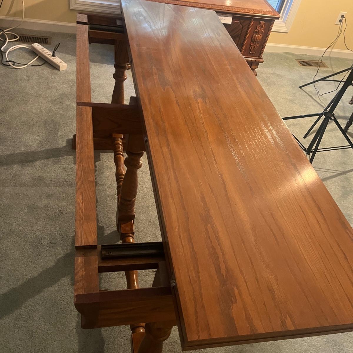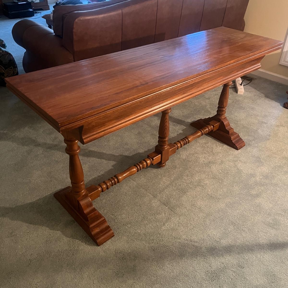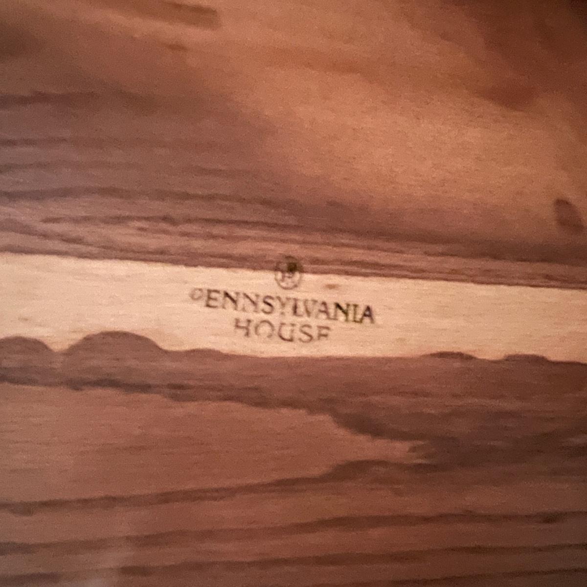 Lot includes a solid wood Pennsylvania House flip top table. Table measures 60” x 18” x 30” when closed and 60” x 36” x 30” when open. Item is down one flight of stairs.