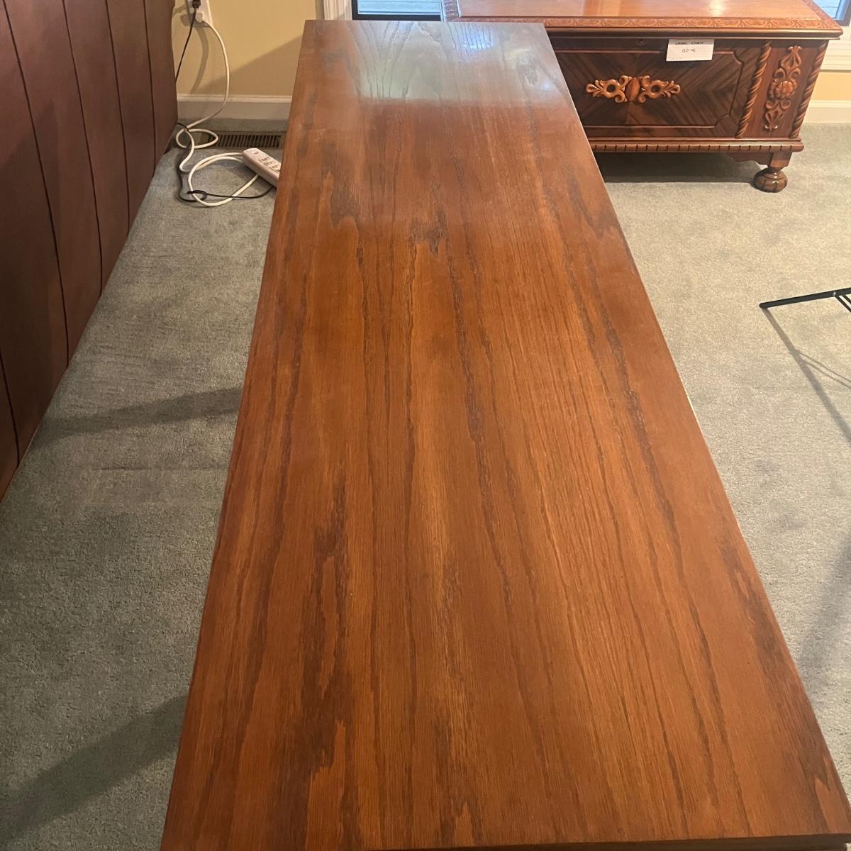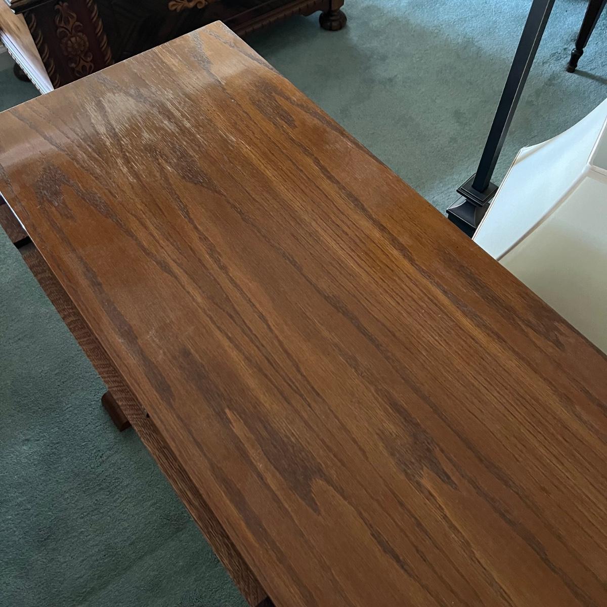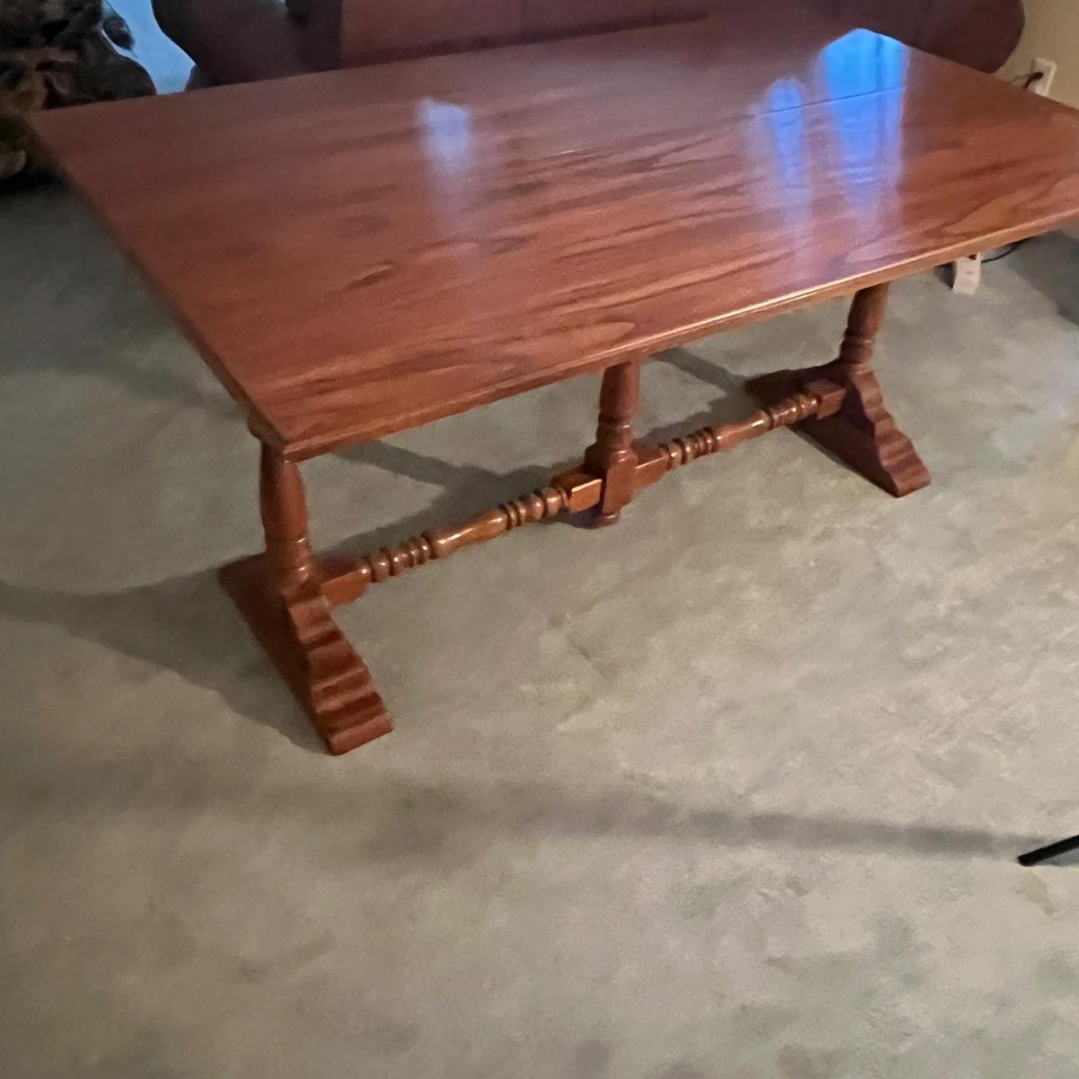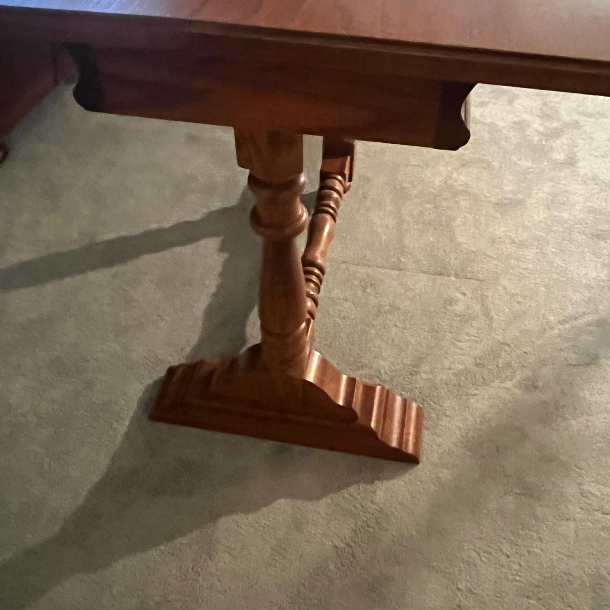 Lot includes a solid wood Pennsylvania House flip top table. Table measures 60” x 18” x 30” when closed and 60” x 36” x 30” when open. Item is down one flight of stairs.