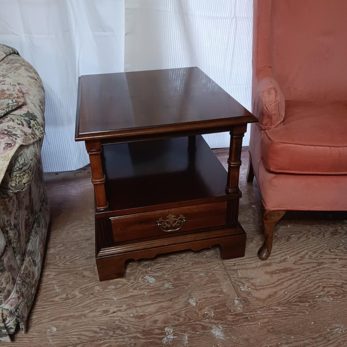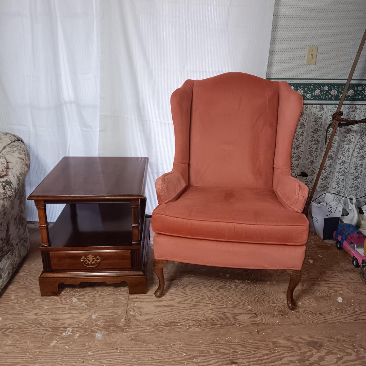 PENNSYLVANIA HOUSE WINGBACK CHAIR AND A 2 TIER END TABLE WITH DRAWER