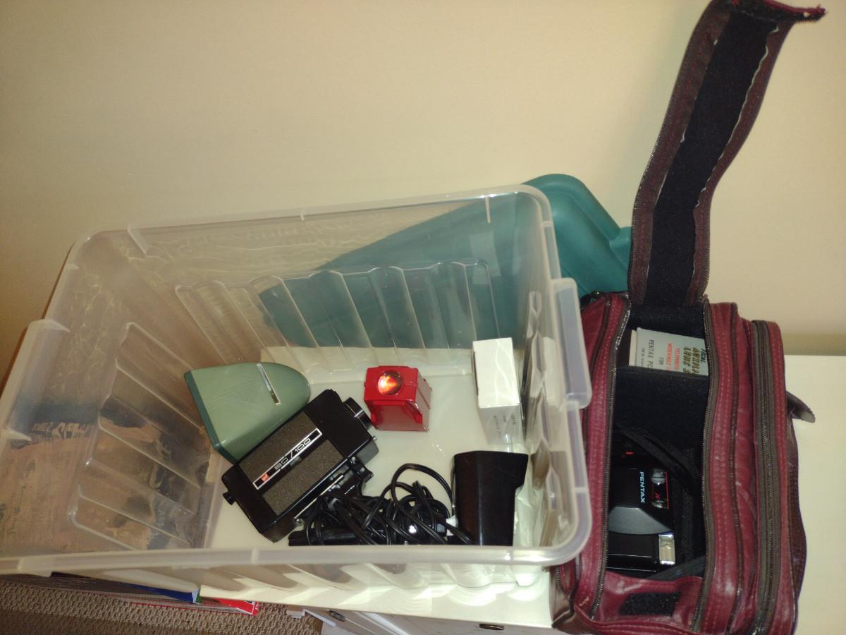Pentax Camera and Assorted Camera Equipment. Pentax PC35AF camera with additional lenses, GE Mardi Gras Movie Light, Argus Previewer, MicoEtte viewer, GAF SC-100 video camera. All items untested.