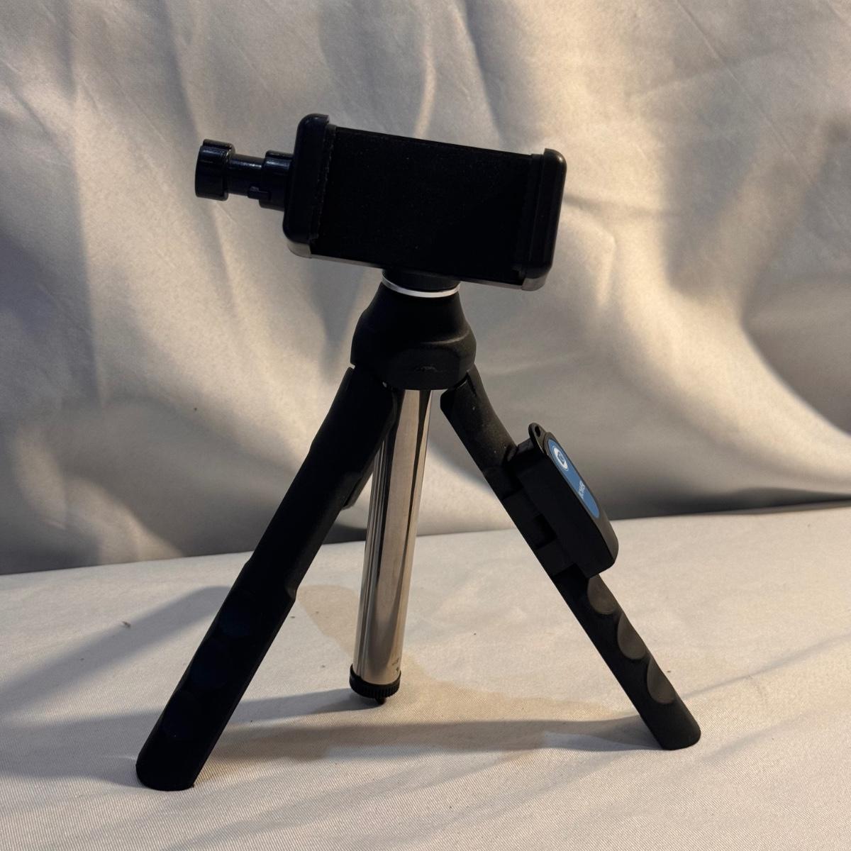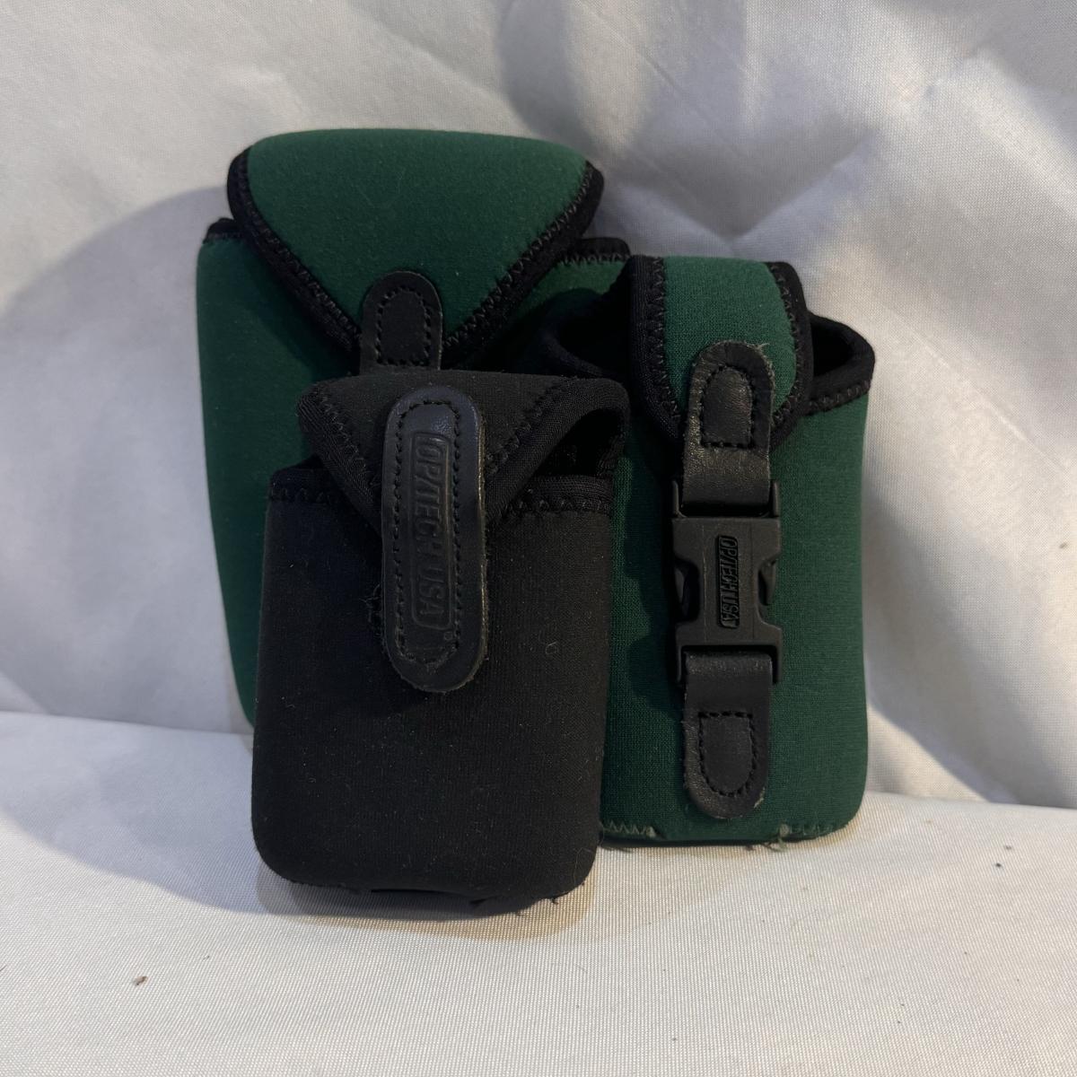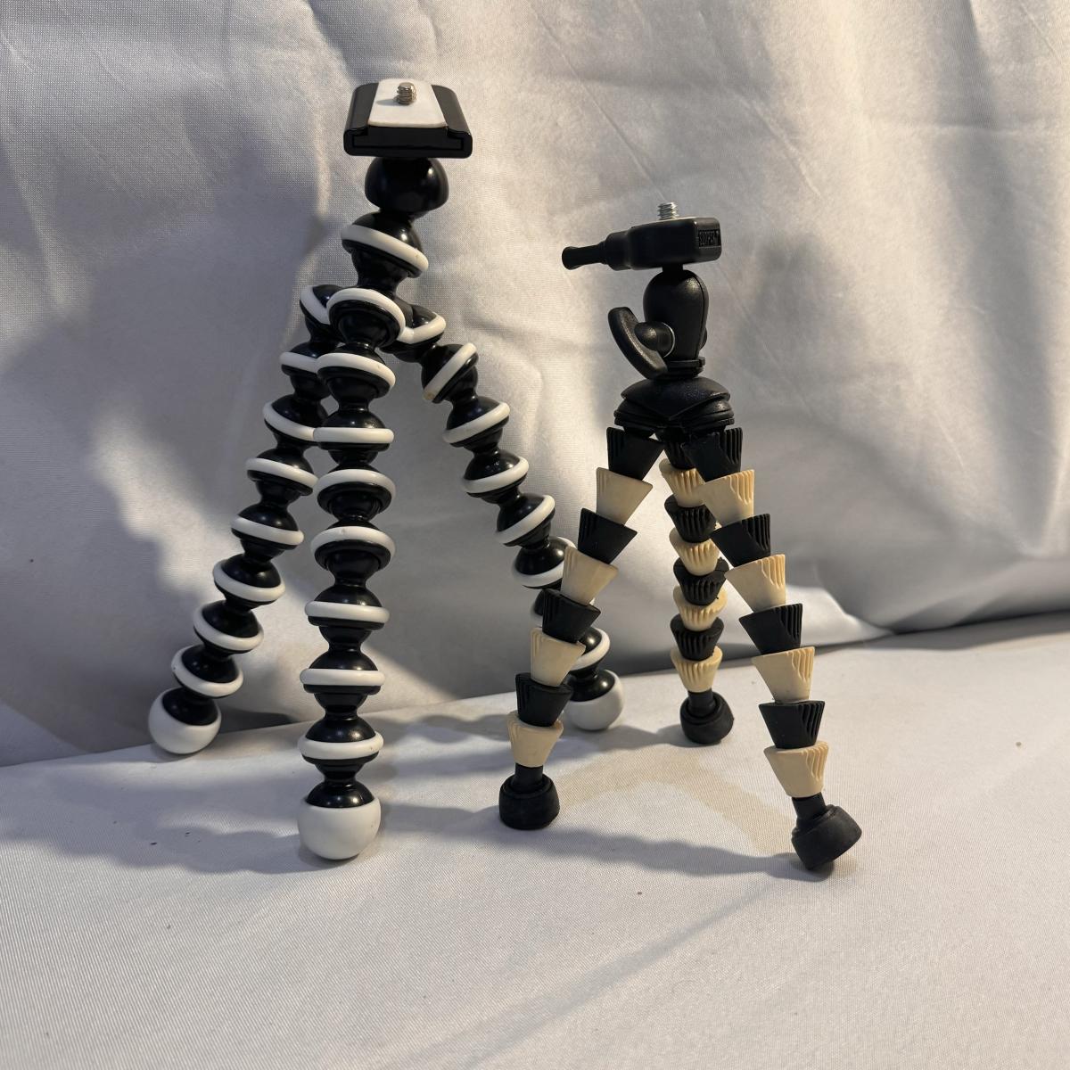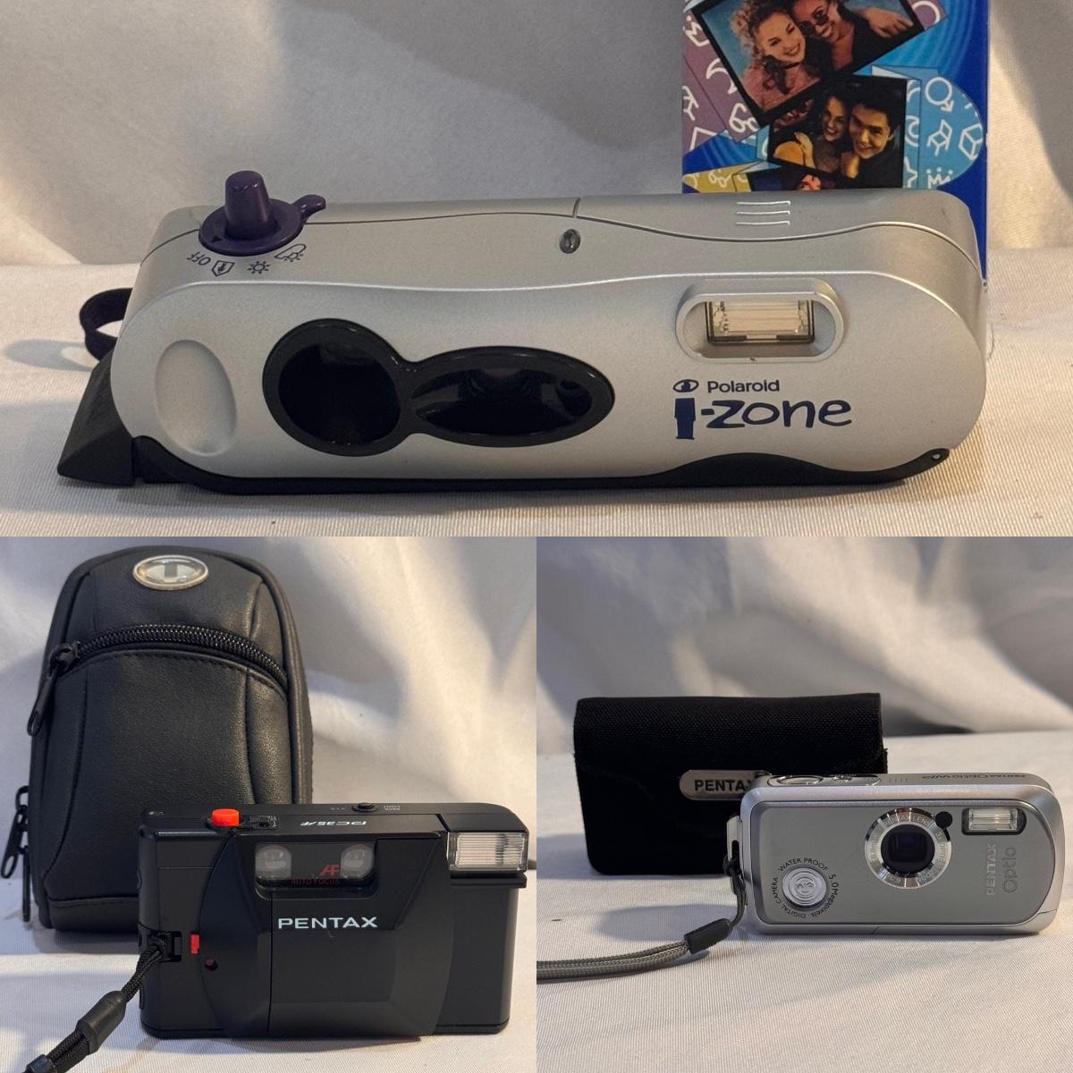 This lot includes two Pentax cameras and their cases, one Polaroid I-Zone camera and sticker film, three OP/Tech USA camera cases in various sizes, two flexible camera stands, one Bower phone stand, two small tripods from REI and Ultra-POD, and two chargers for the Pentax cameras. The Polaroid I-Zone camera requires two AA batteries to function. That camera measures 7” x 2” x 2”H. Shipping available.