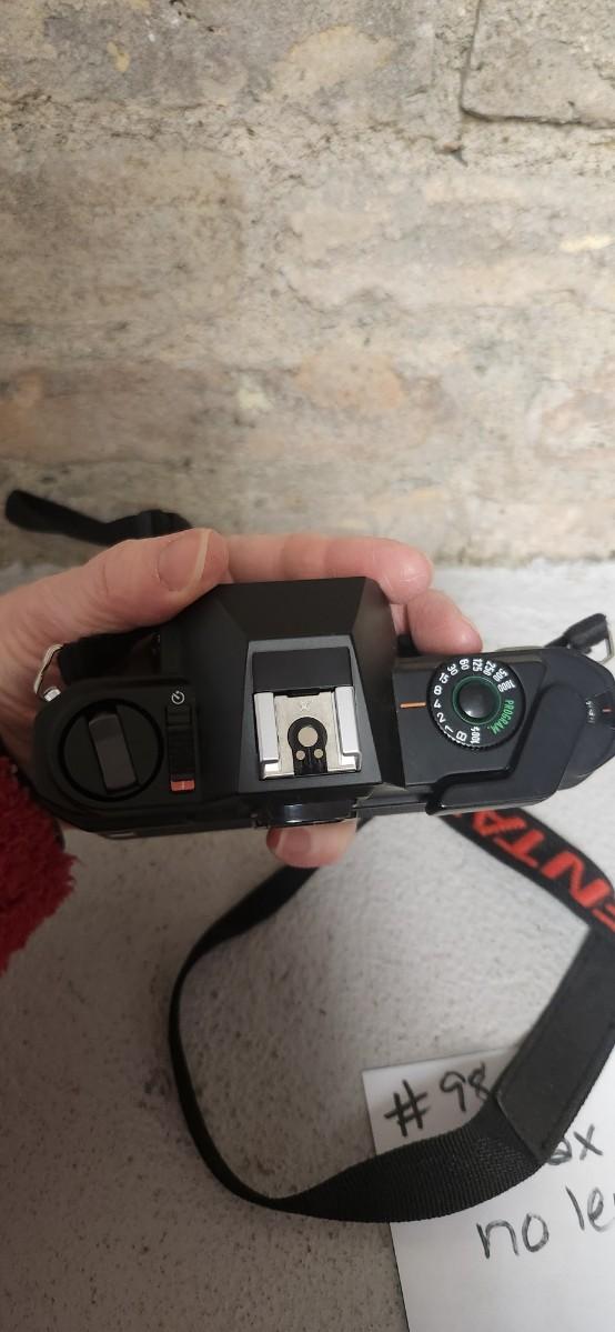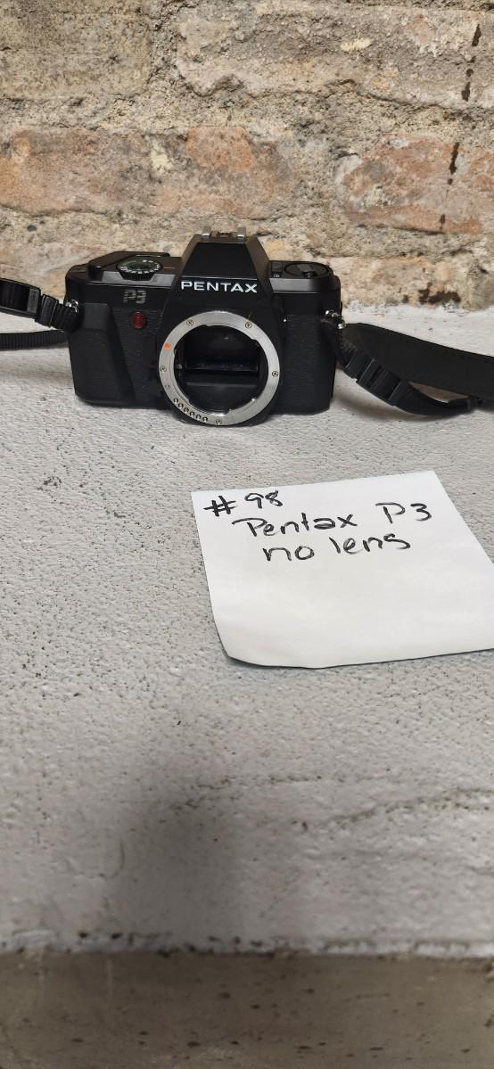 Pentax P3..no lens but there is film in it. I chose not to open the back. Who knows what might be on that film ?