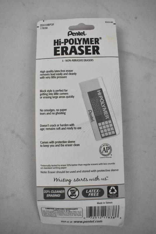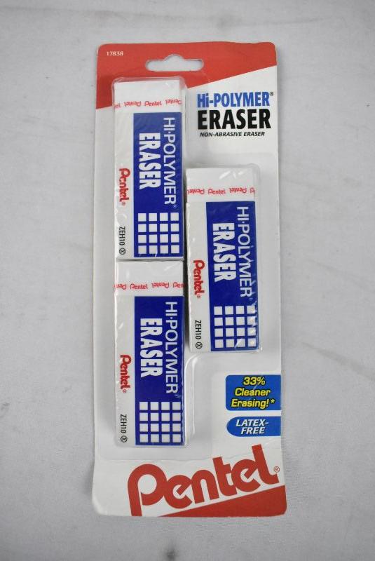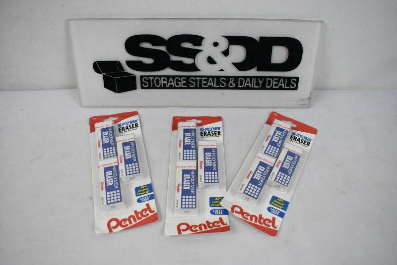 Pentel Hi-Polymer Block Eraser, White, 3 packages, 3-Count each - New