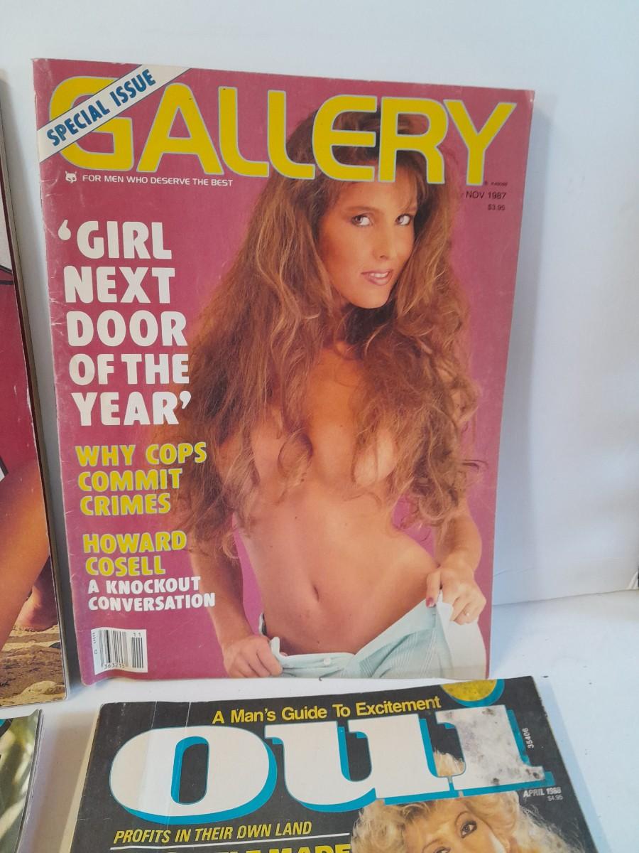 Penthouse Back issue Magazines, OUI magazines, Gallery magazine, and 1987 calendar.