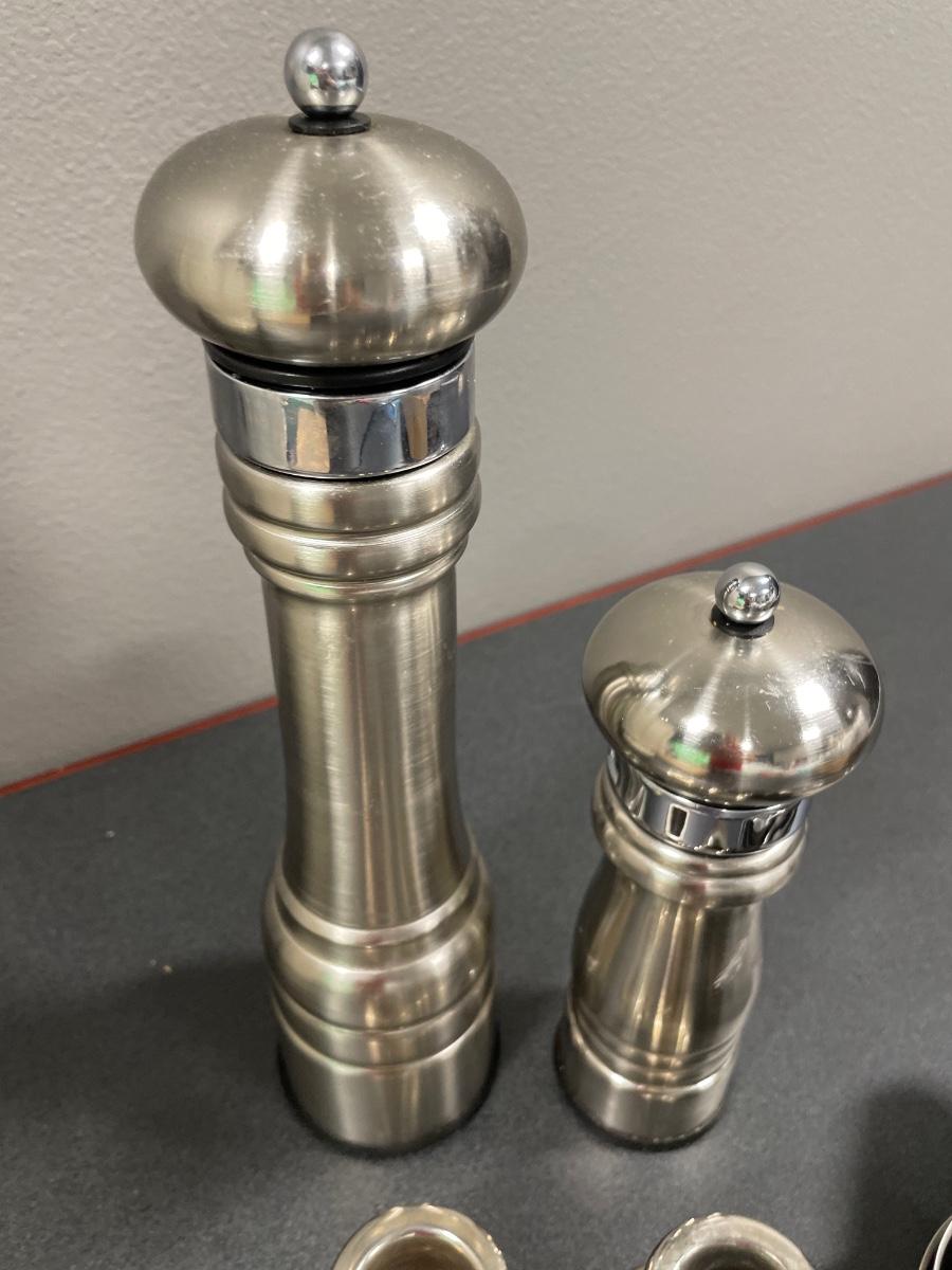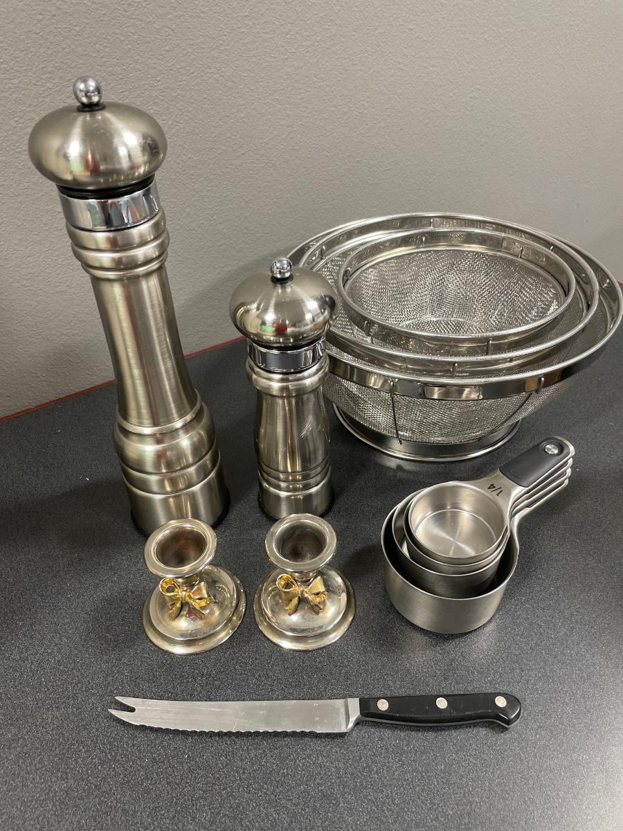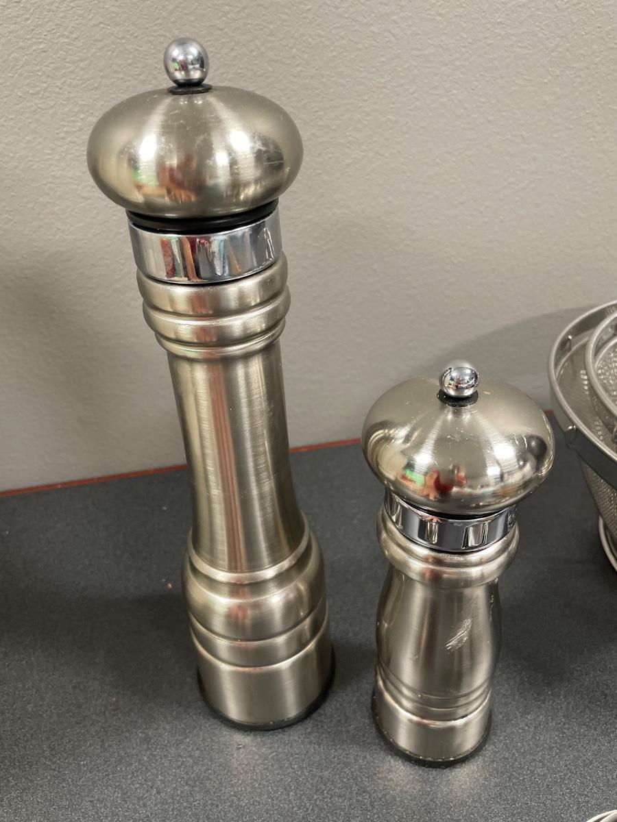 Pepper grinders, strainers, wusthof knife and measuring cups