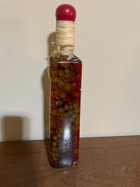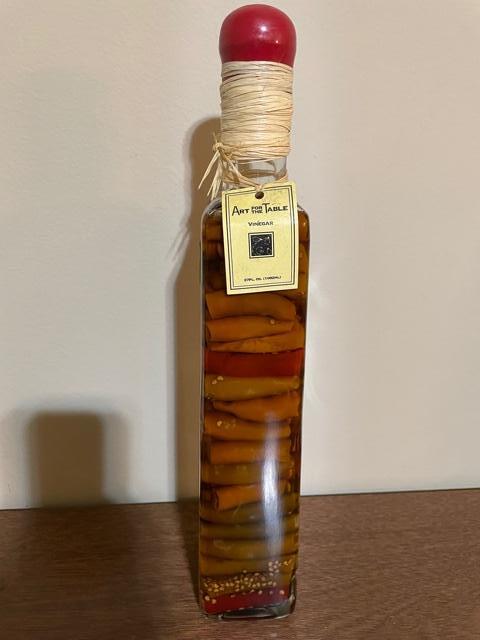Artfully arranged peppers in vinegar make an art jar for the table. 2.5"W x 15.25"H