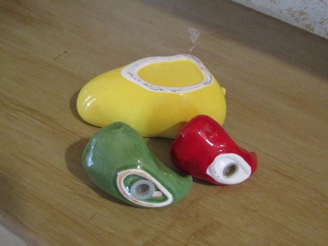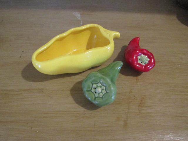 Pepper Themed Ceramic Shakers and Small Bowl
