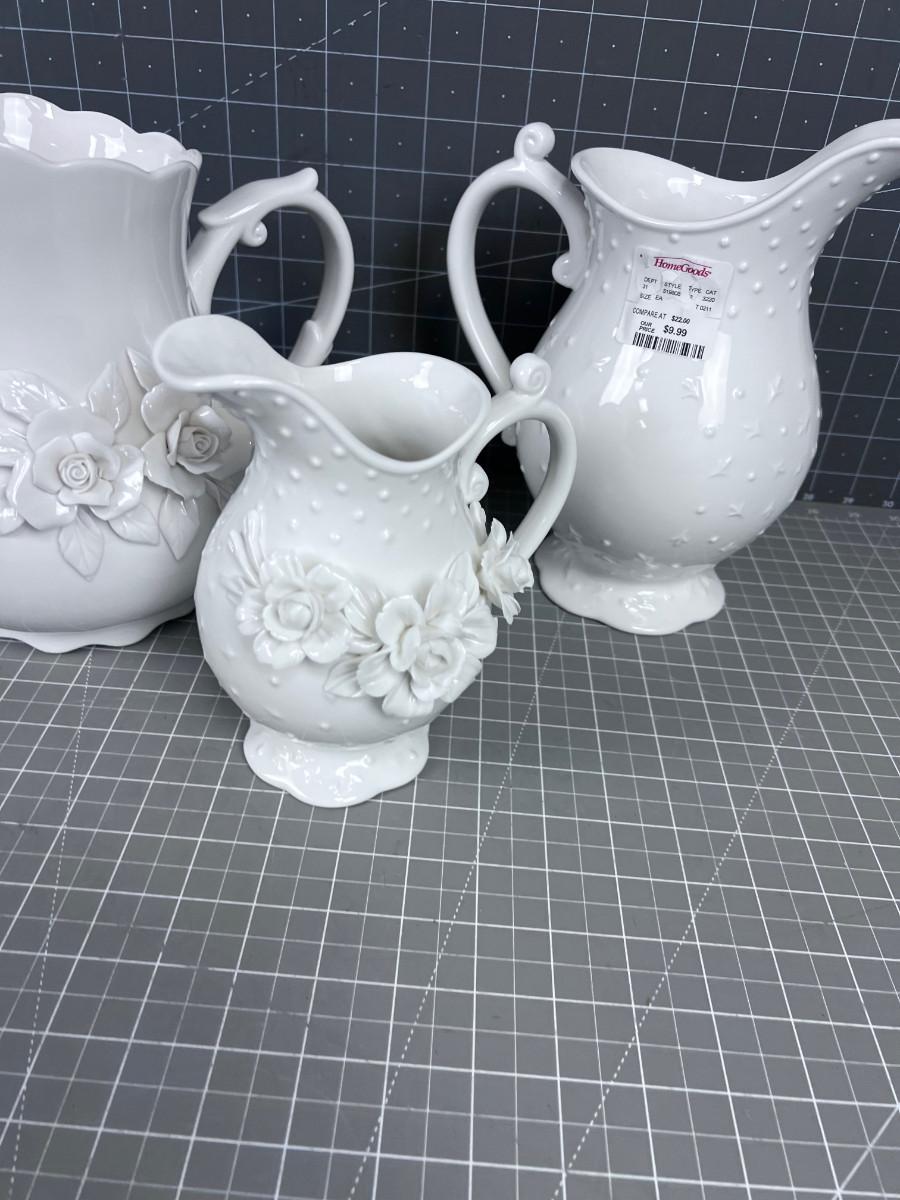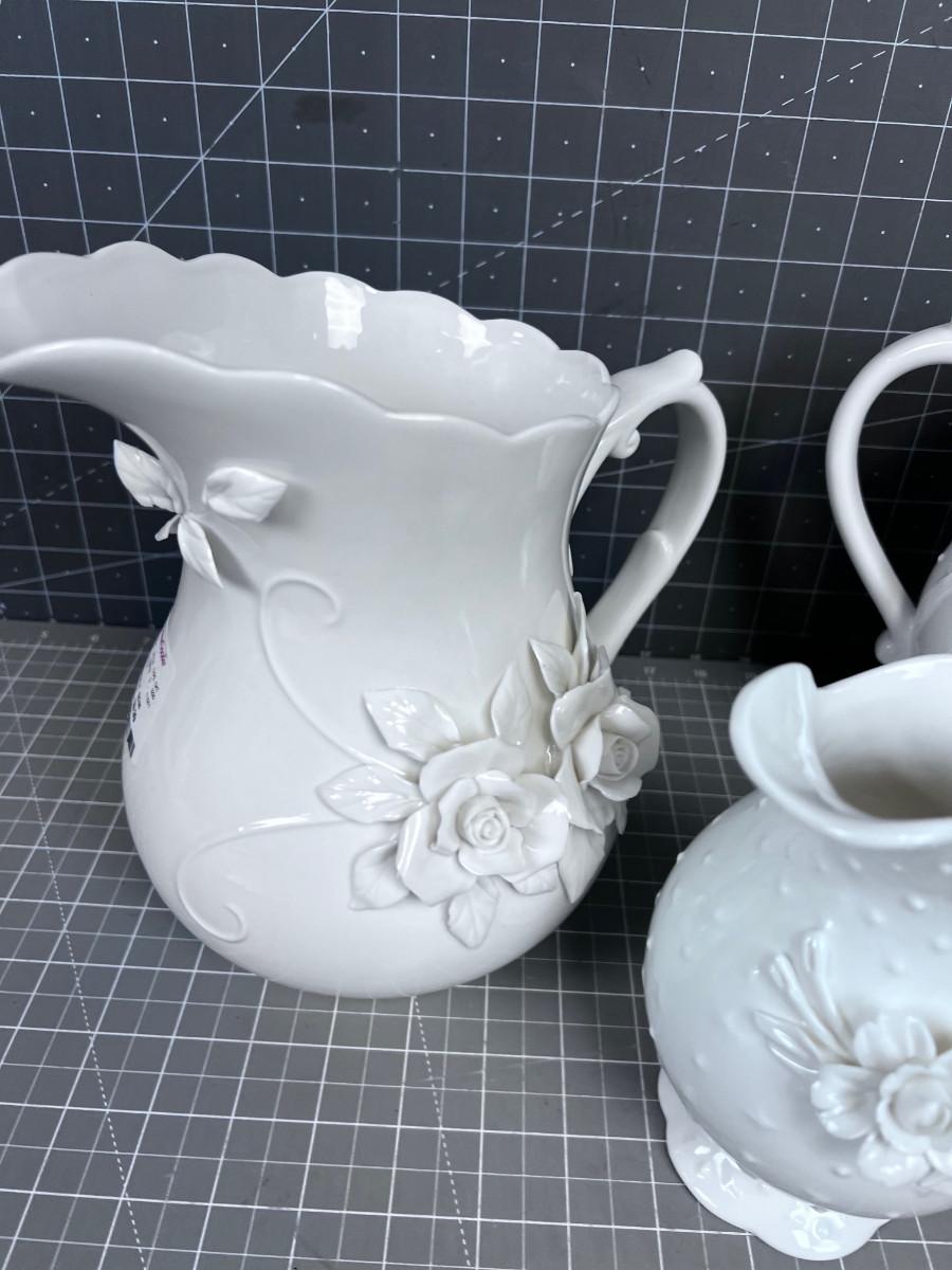 Pepper Tree Fine Porcelain Pitchers (3) Various Sizes