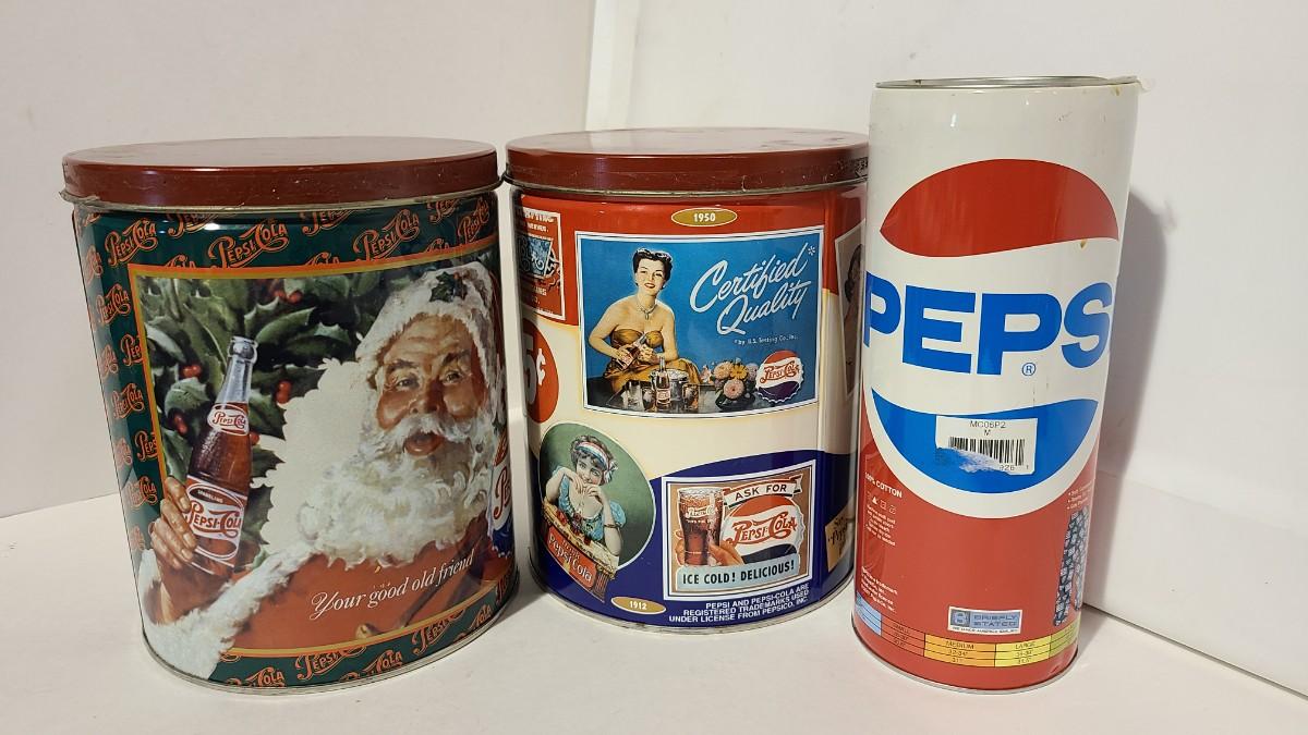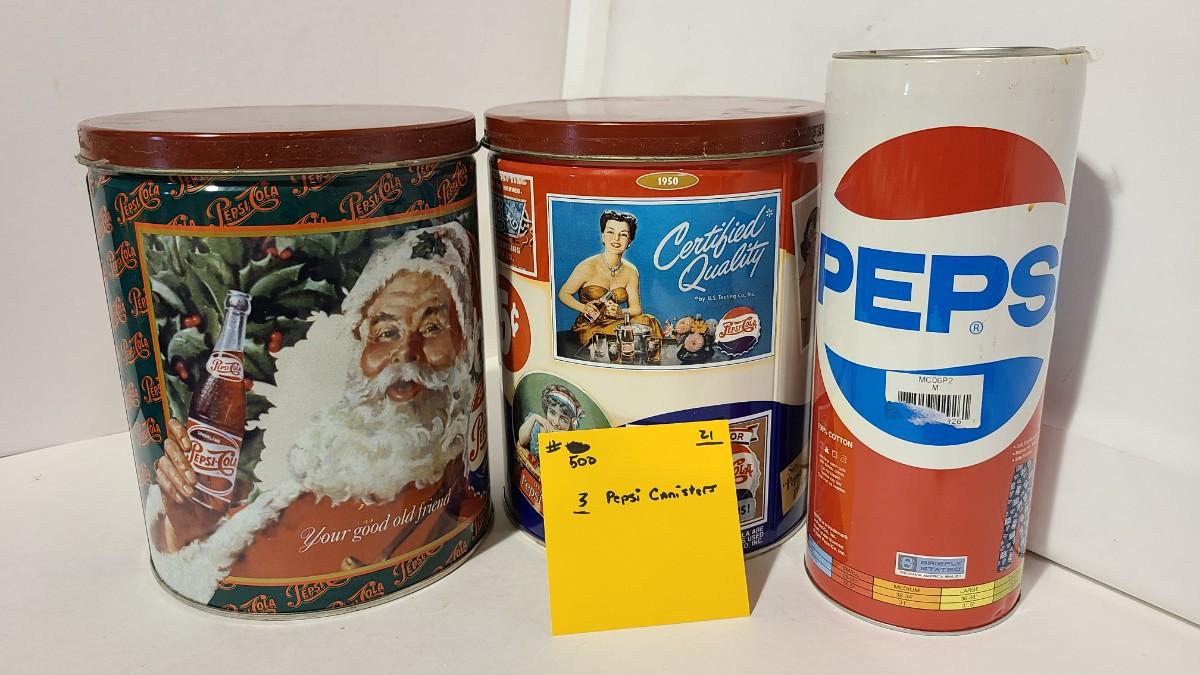 3 Pepsi Canisters Metal with Lids -Item# 500