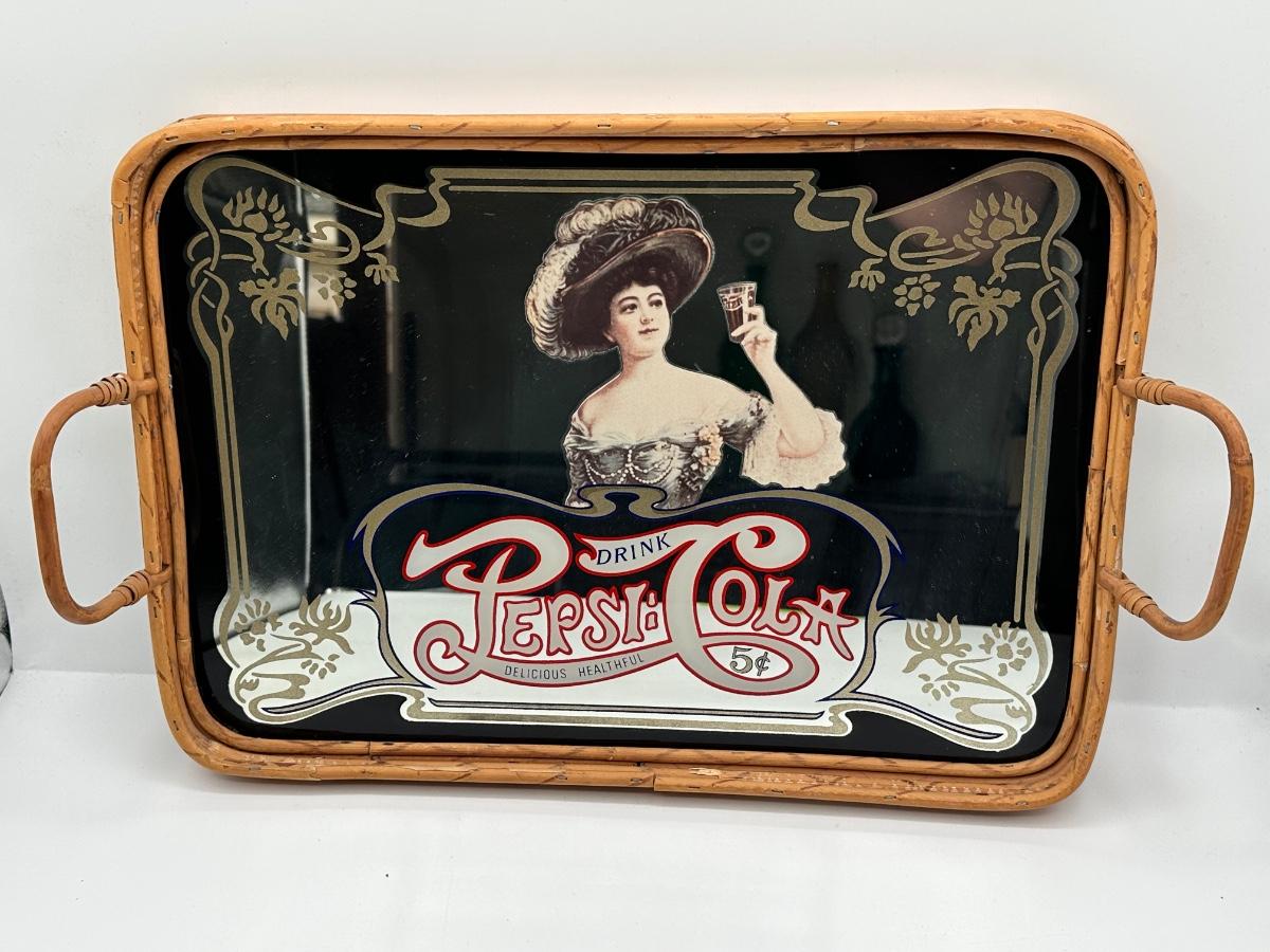 Pepsi Cola Mirror Tray with Bamboo Edging