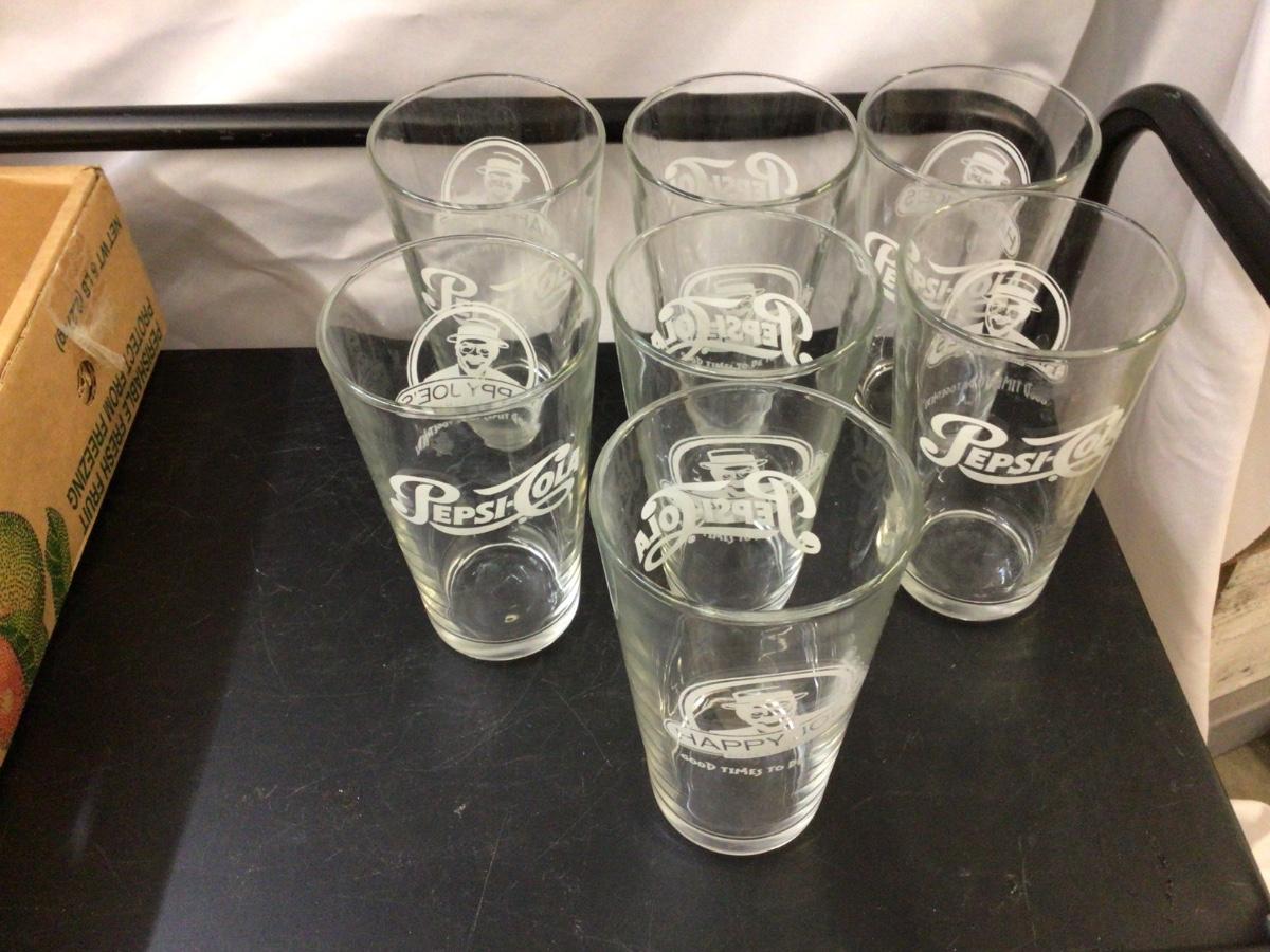 You get seven Pepsi Happy Joe’s Pizza glasses.
