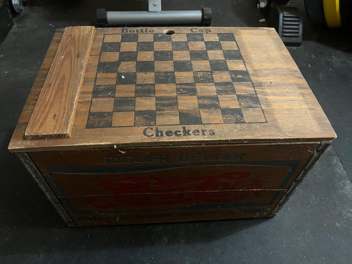 Pepsi-Cola Bottle Cap Checkers Crate w/ Collectible Coke Bottles