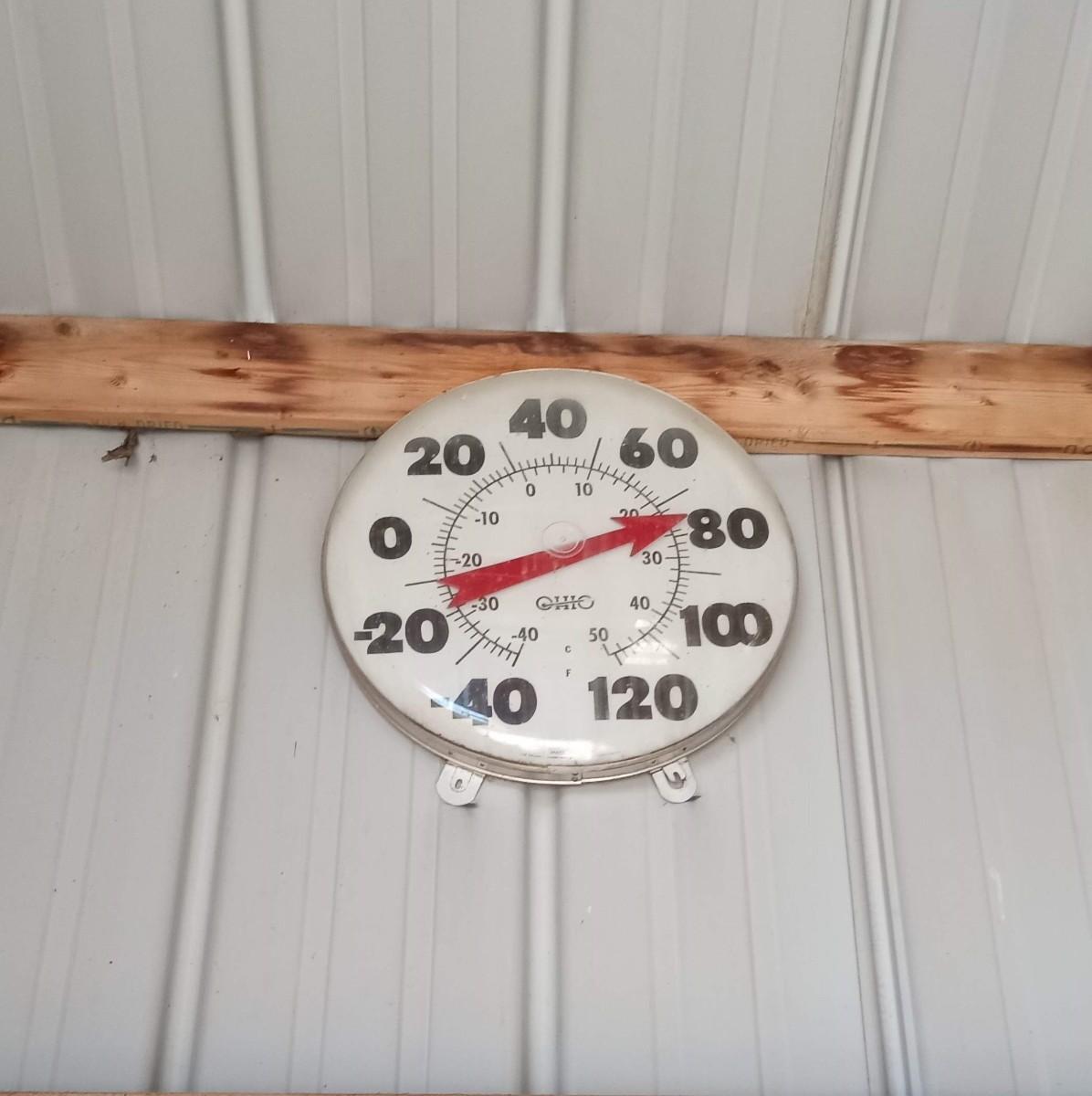 THE THERMOMETER IS HANGING HIGH IN A METAL BUILDING, YOU WOULD NEED TO USE THE EXTENSION LADDER TO GET IT DOWN YOURSELF