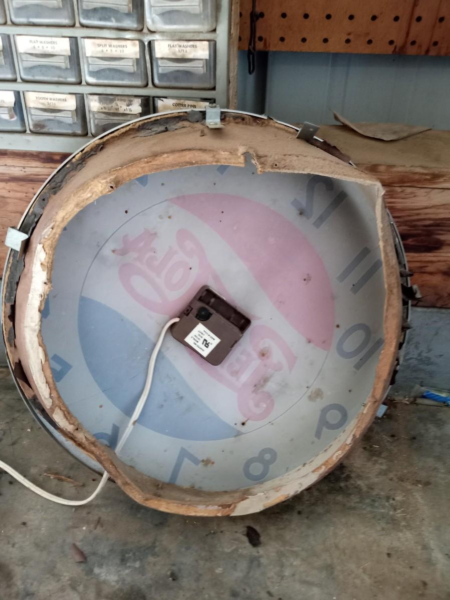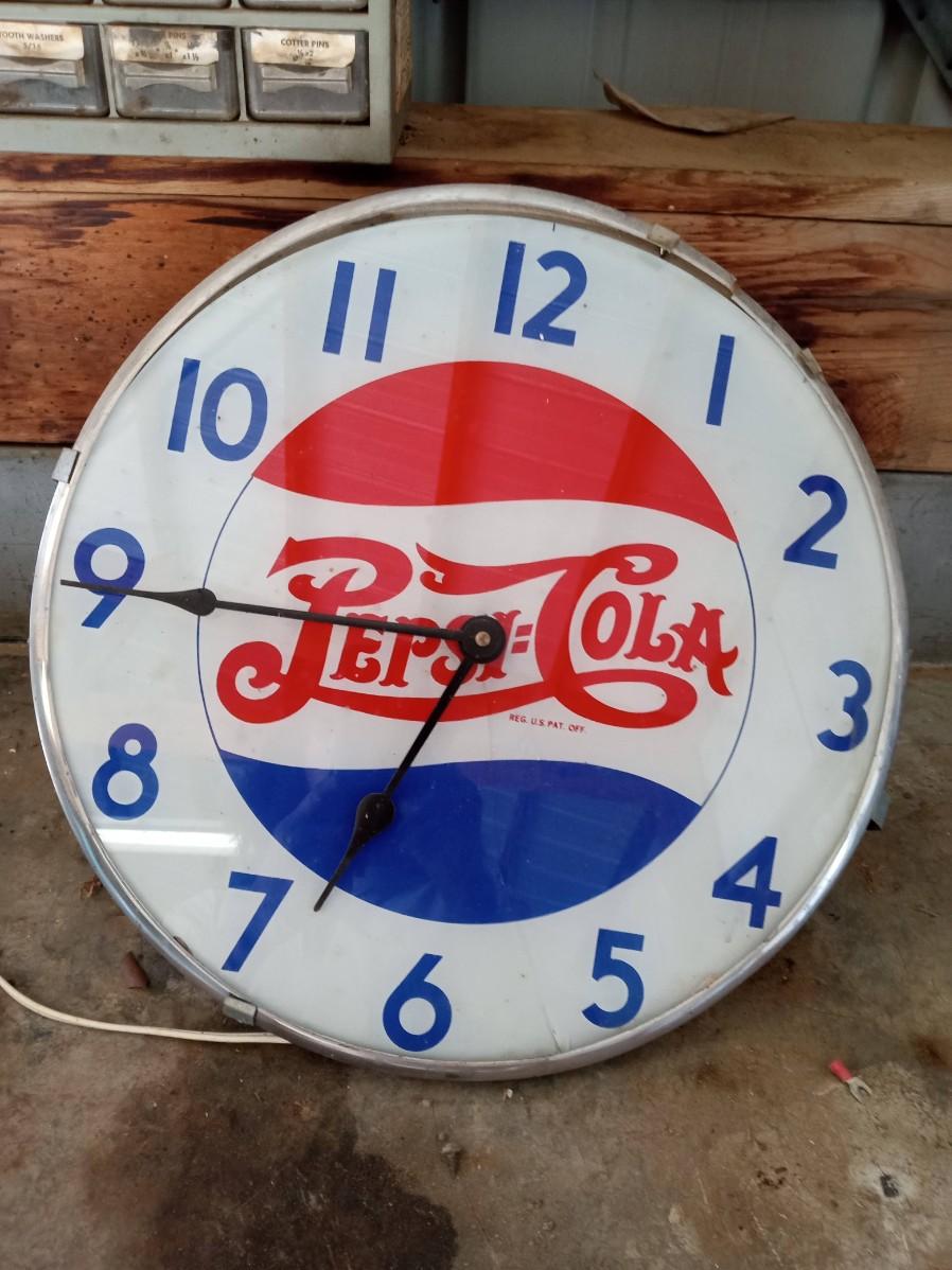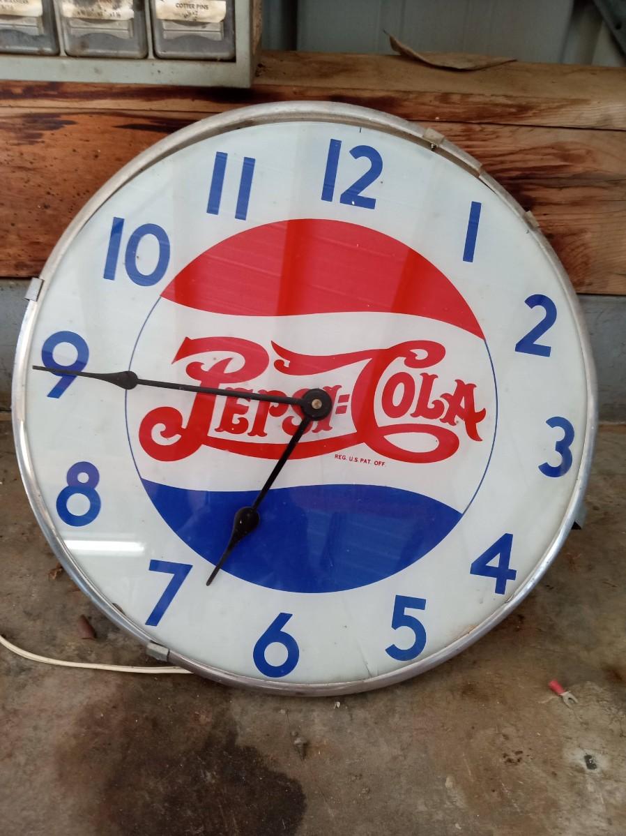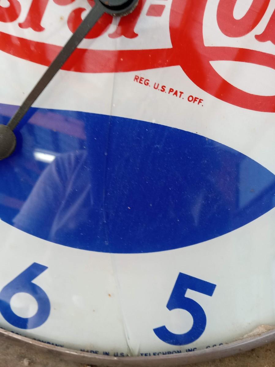 THE PEPSI CLOCK HAS A CRACK IN THE FRONT GLASS IT IS 15"