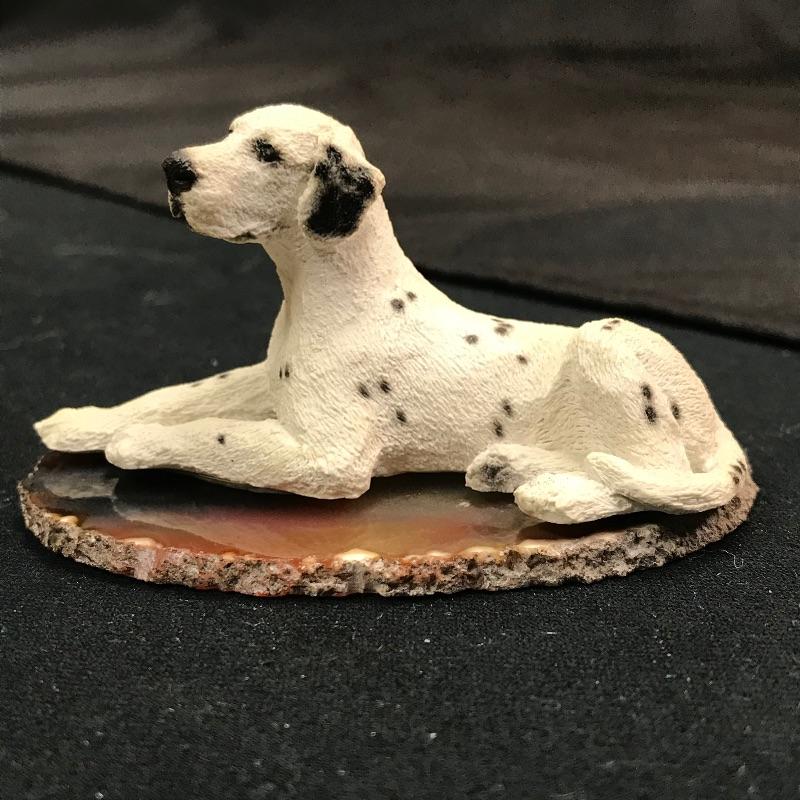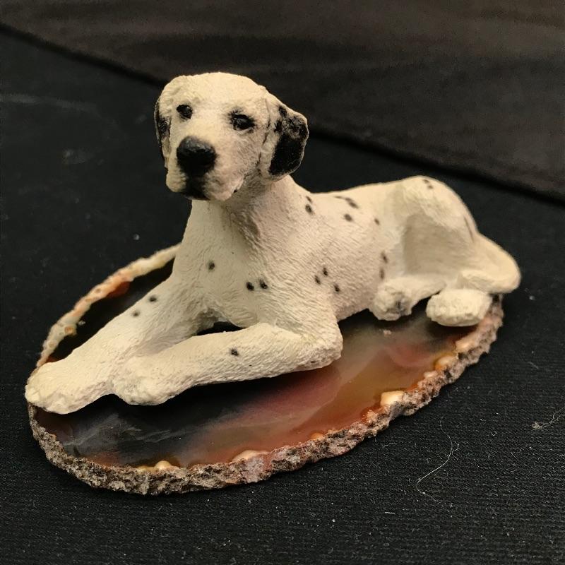 Cute novelty paperweight depicting a perched Dalmatian atop a very nice quality geode slice. The Dalmatian is finely detailed, and the geode slice is free of cracks or blemishes.