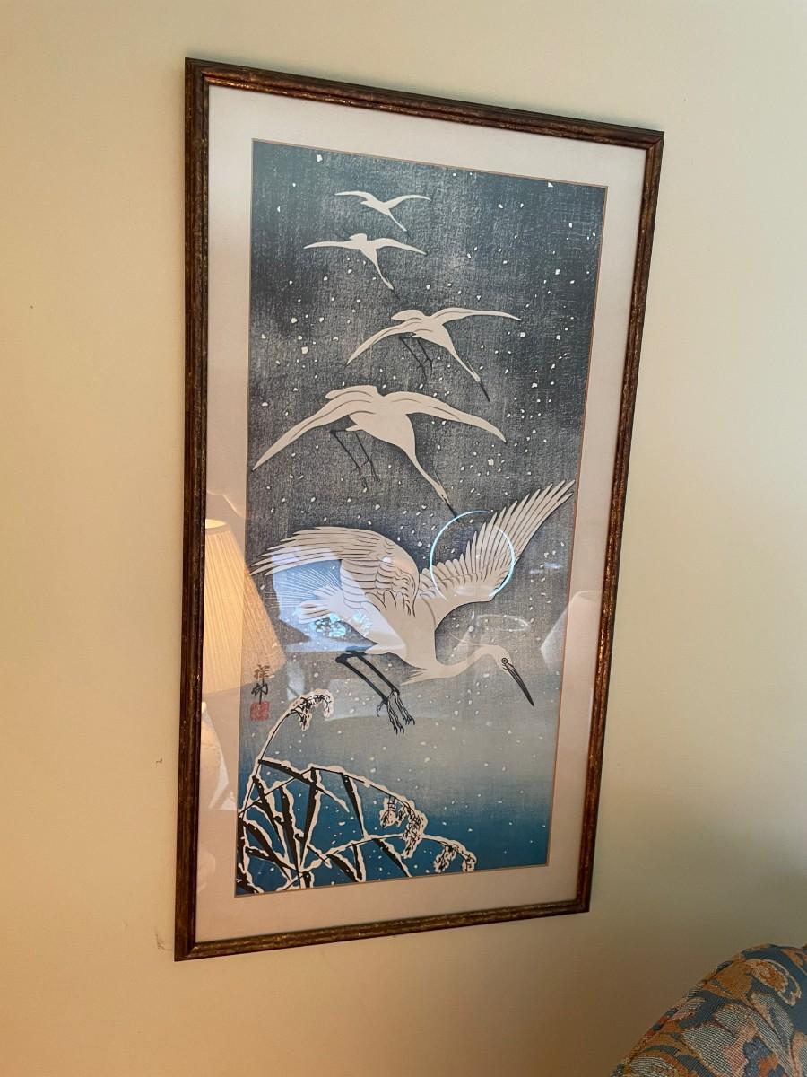 Perching Herons in Snow Framed Print by Ohara Koson