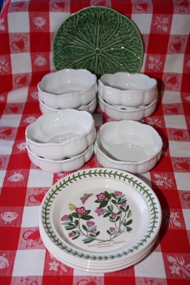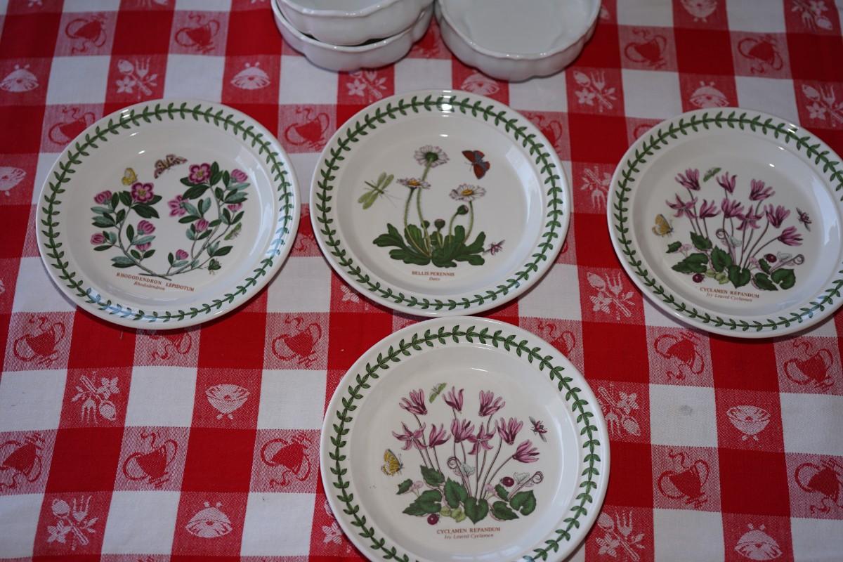 7 low bowls of 6" , set of 5 botonical plates( one not shown) 8"