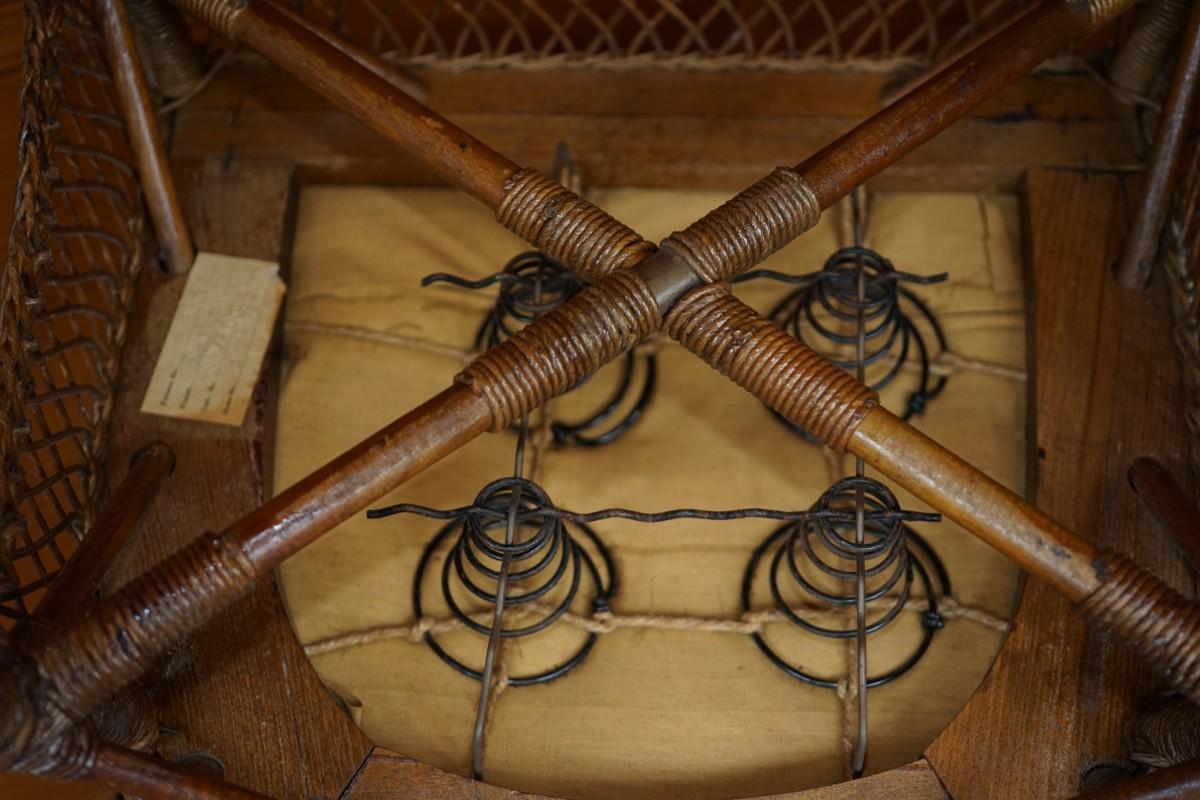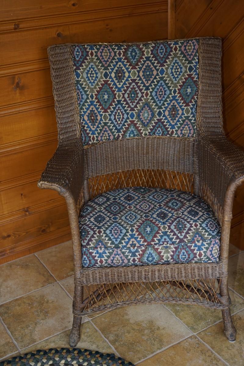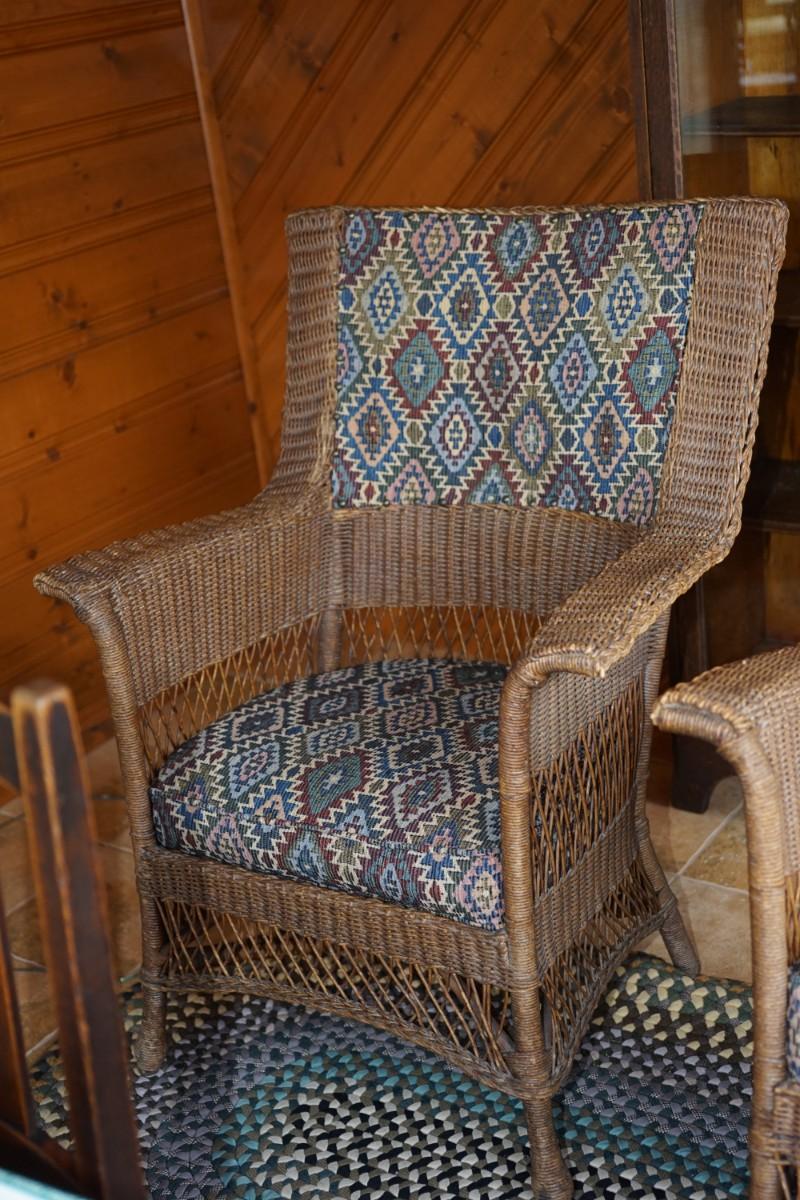 I did not see any serious breakage in the wicker. It appears in good condition with slight wear on the arms but not bad. Typical with age.