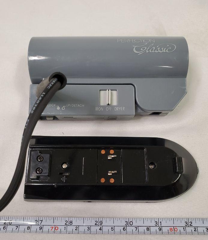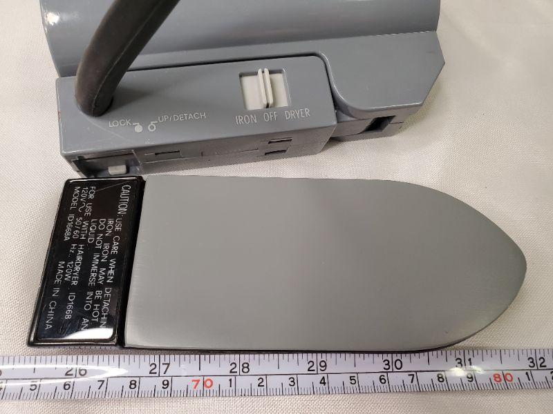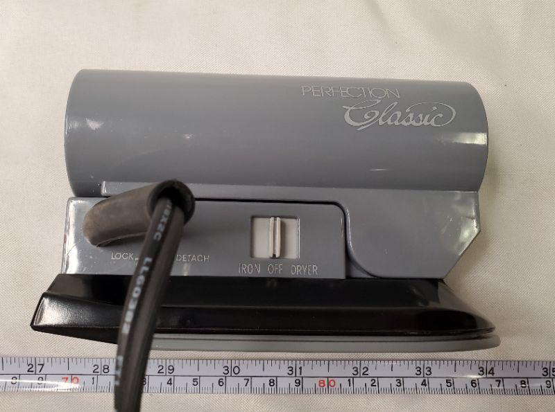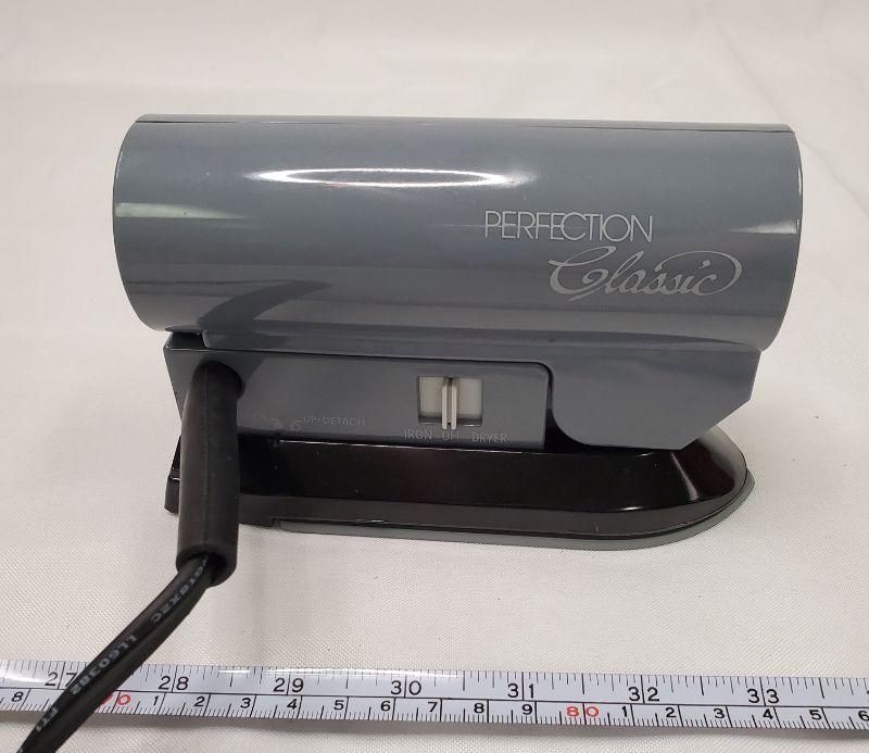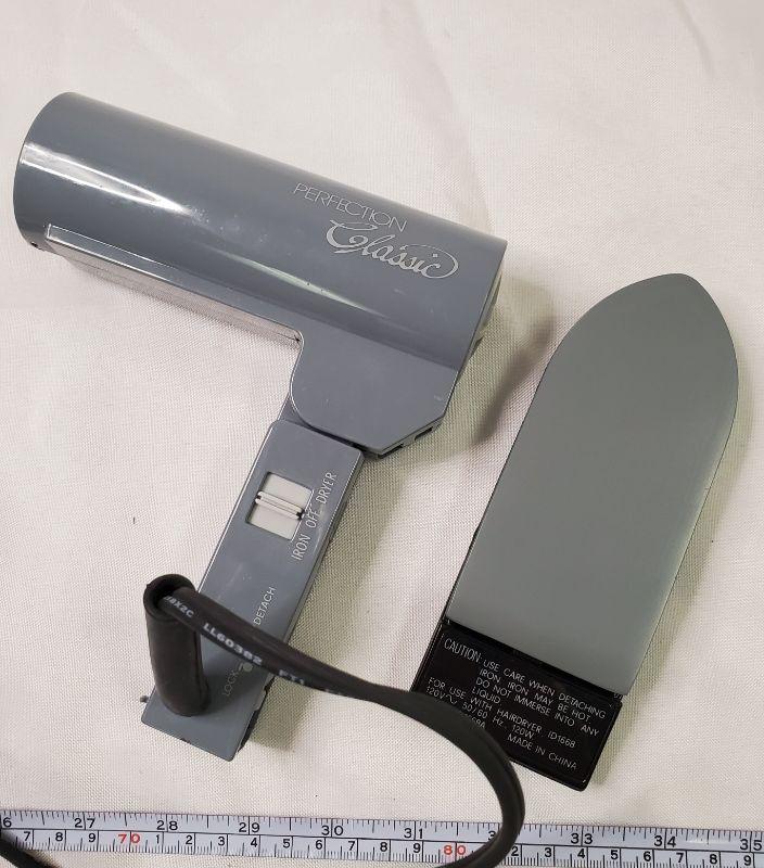 Perfection Classic brand hair dryer/iron combination. Use as an iron or remove the iron to use the hair dryer, great for travel! Good working condition with travel bag.