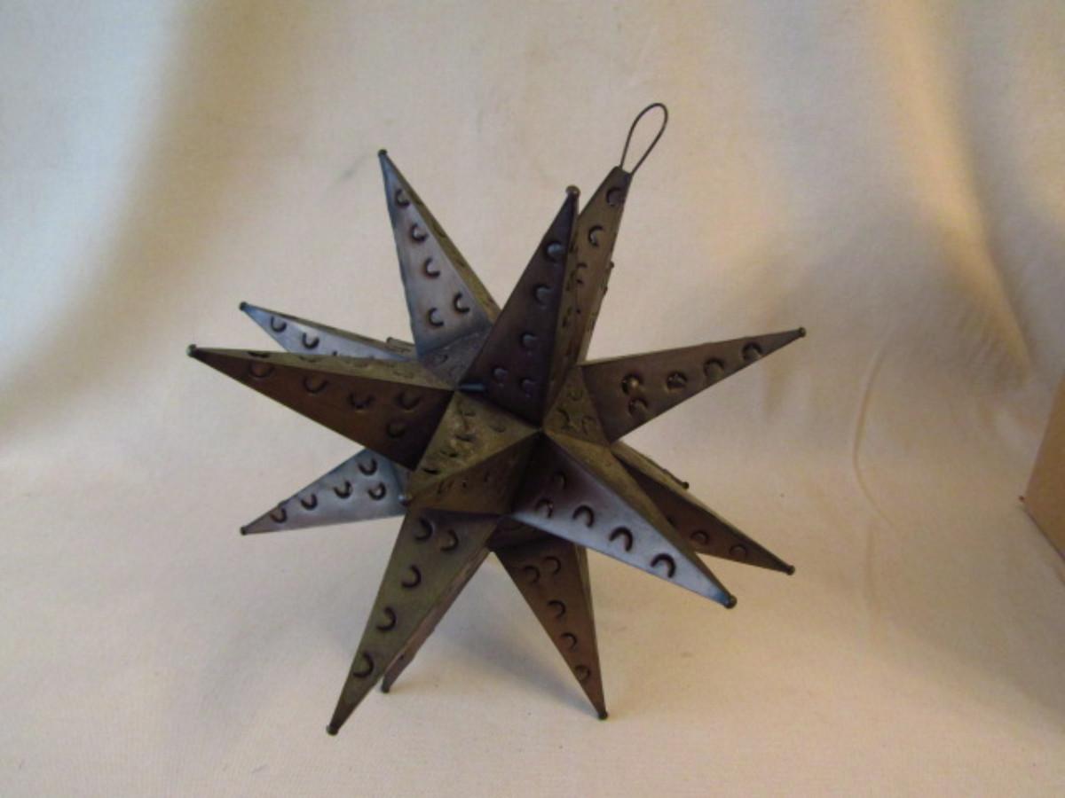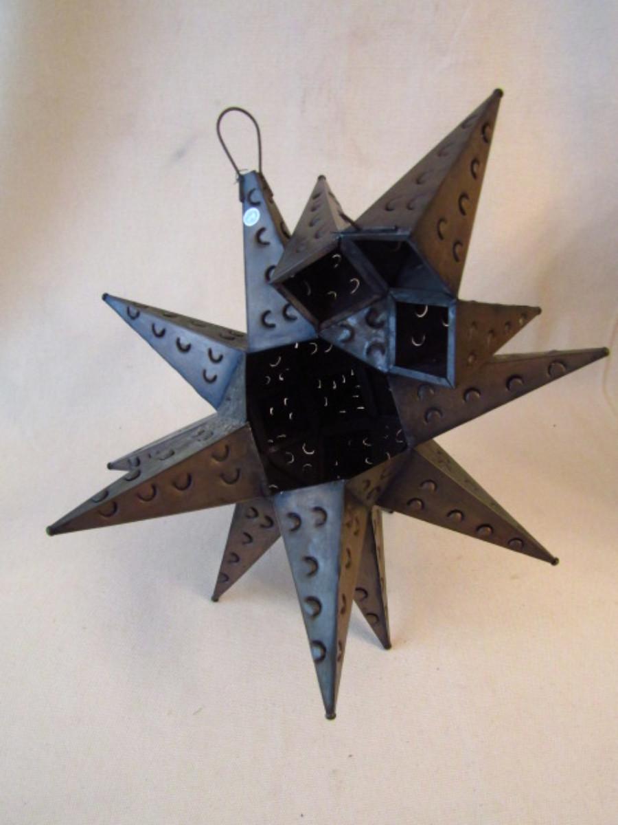 Perforated Metal Star Shaped Hanging Candle Holder- Approx 15 1/2" Wide