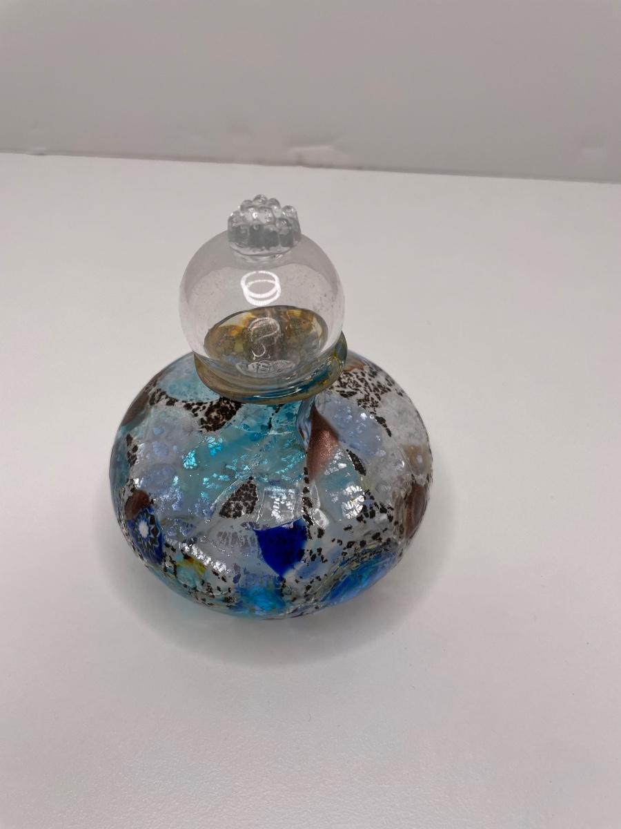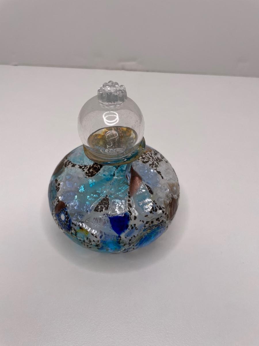 Beautiful blues and brown colors the perfume bottle with clear crystal glass dauber