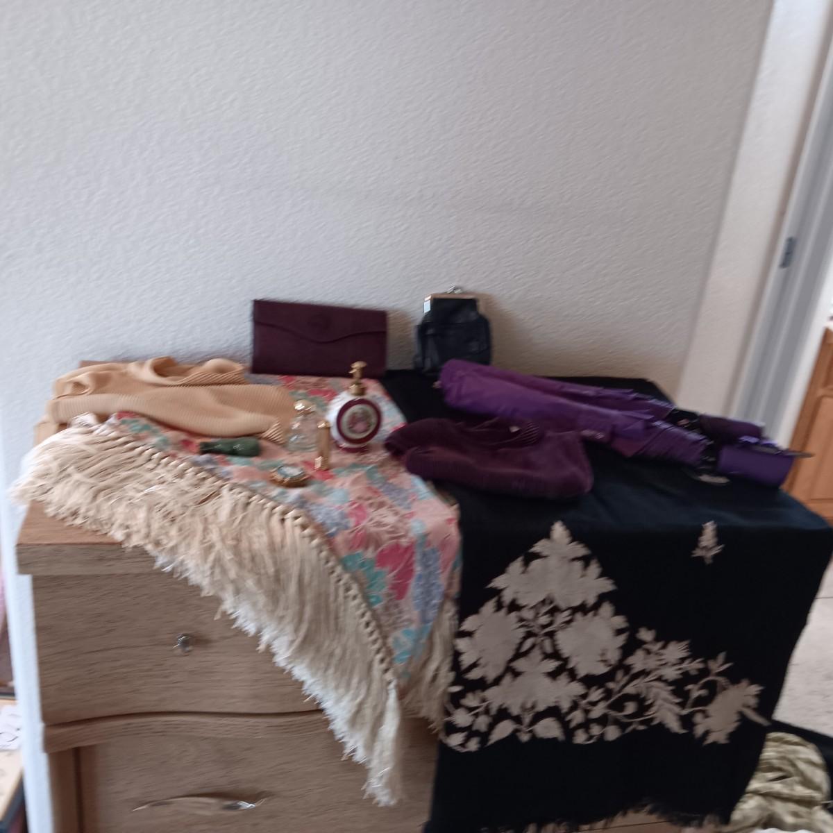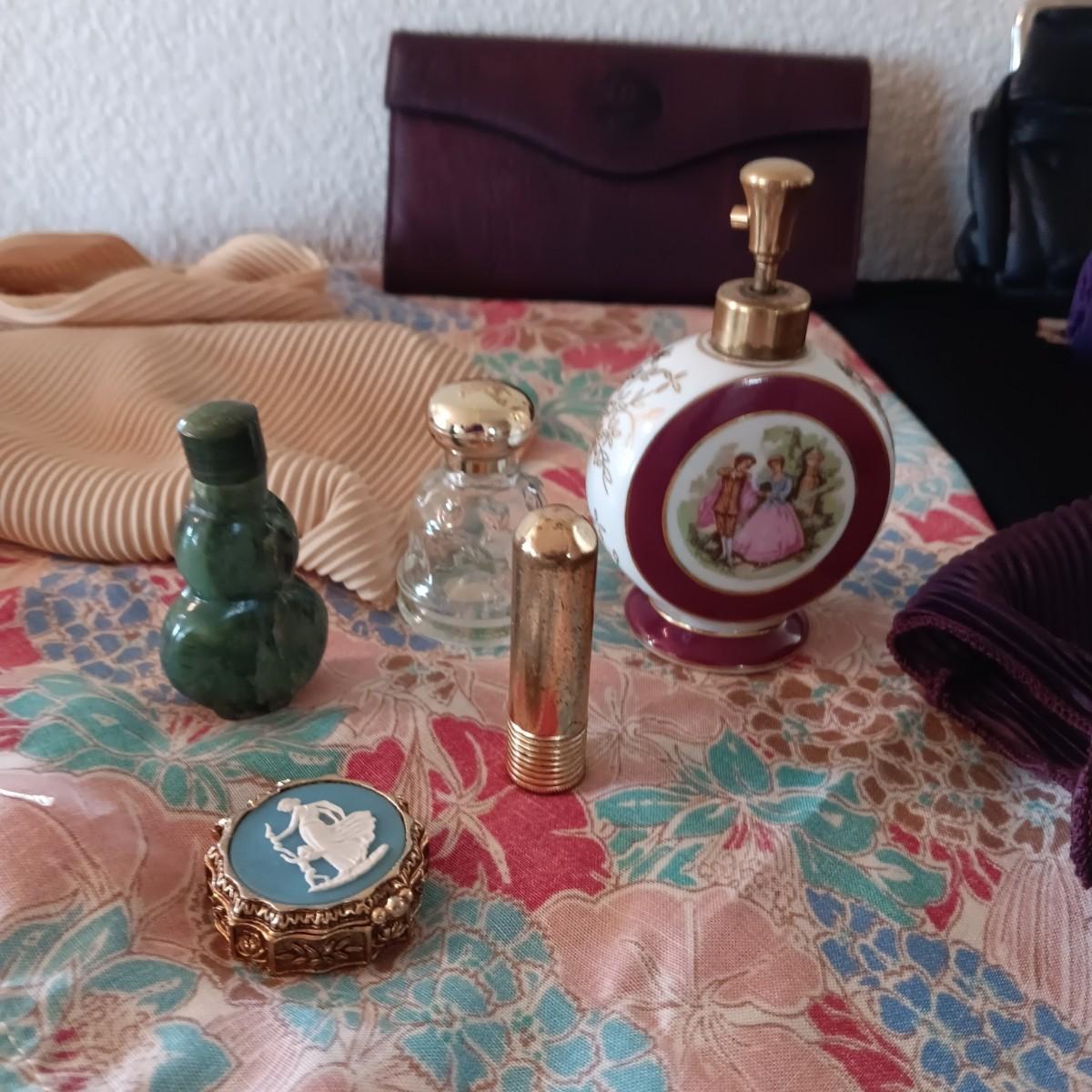 PERFUME BOTTLES, SCARVES, WALLET AND MORE