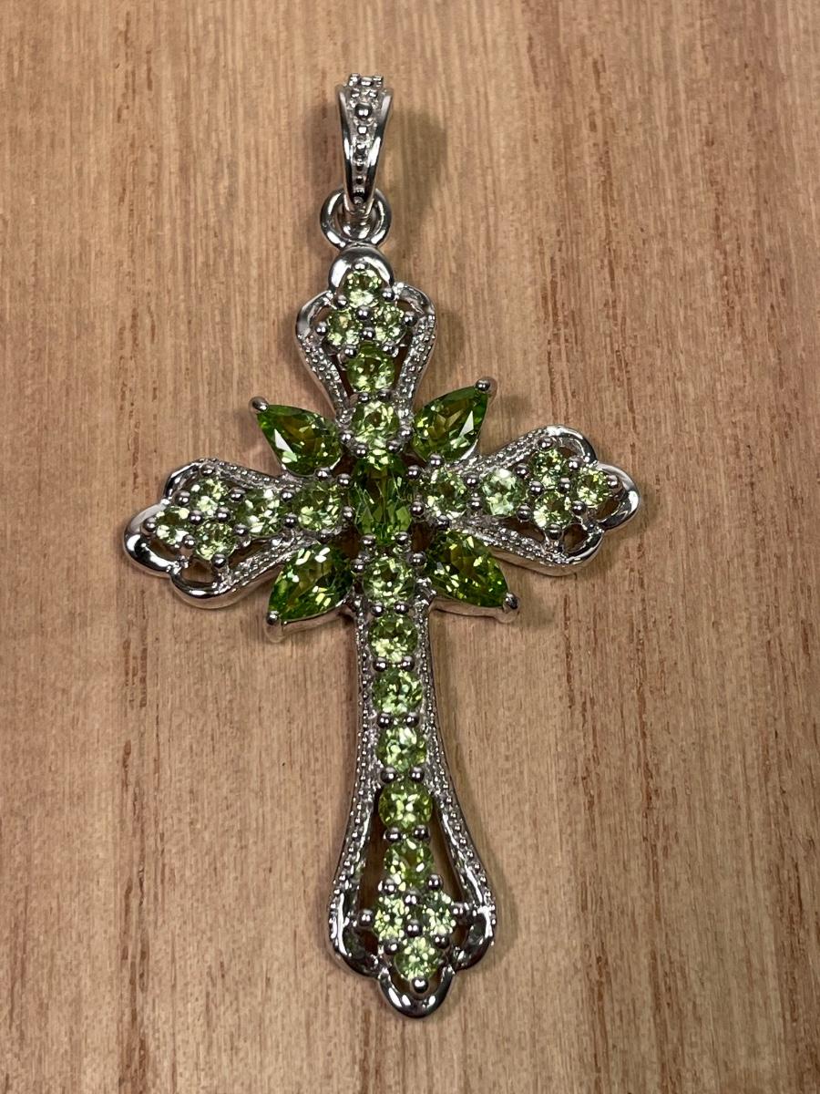 Peridot and Sterling Cross Pendant New