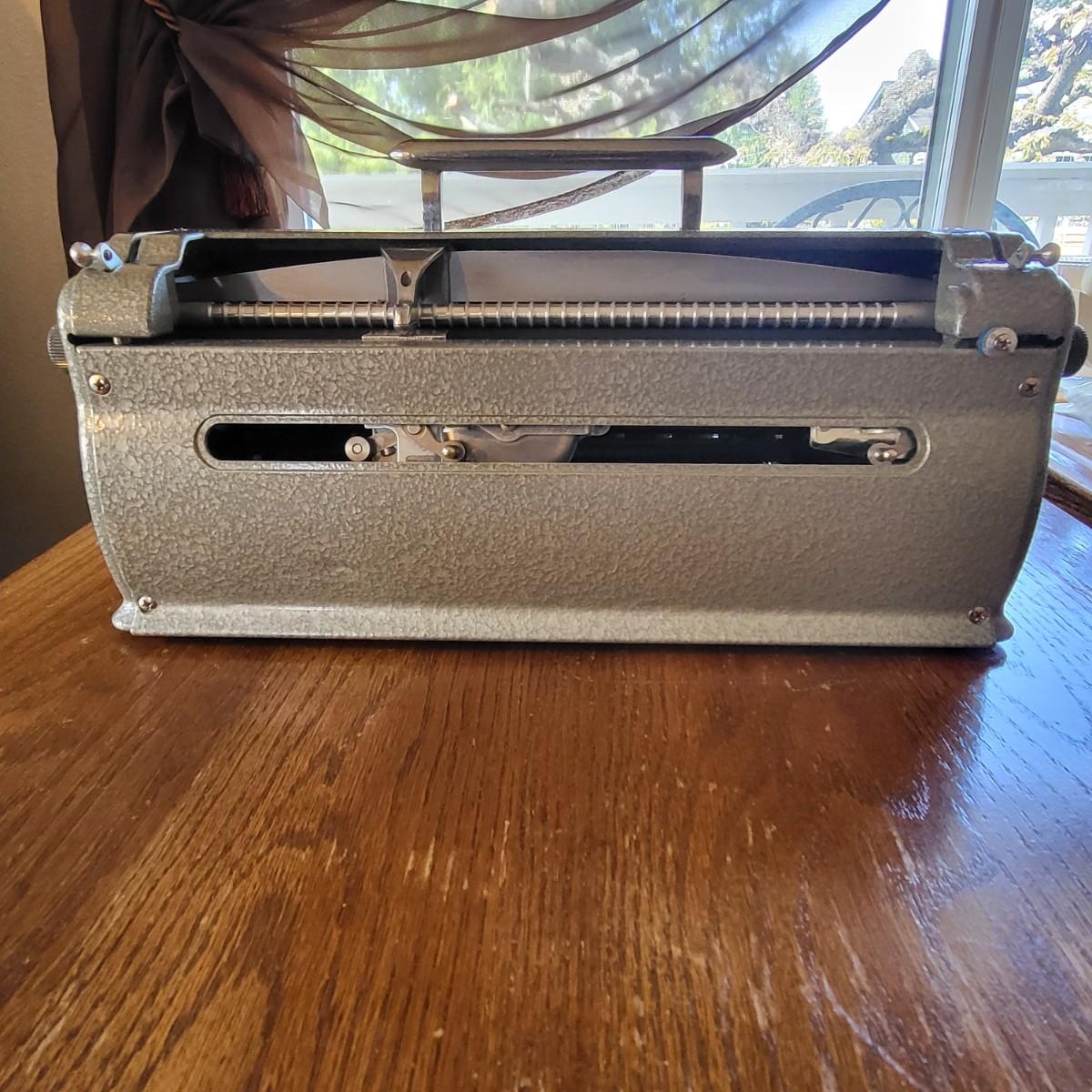 Distributed by Howe Memorial Press. Overall measurements 13.5" long x 6" tall x 8.5" deep.comes with dust cover. Works.