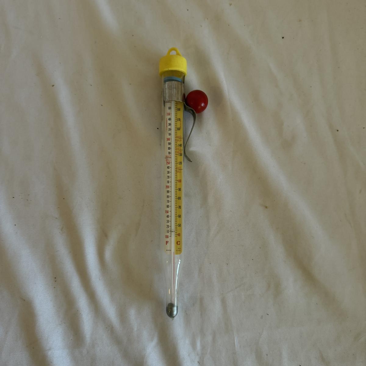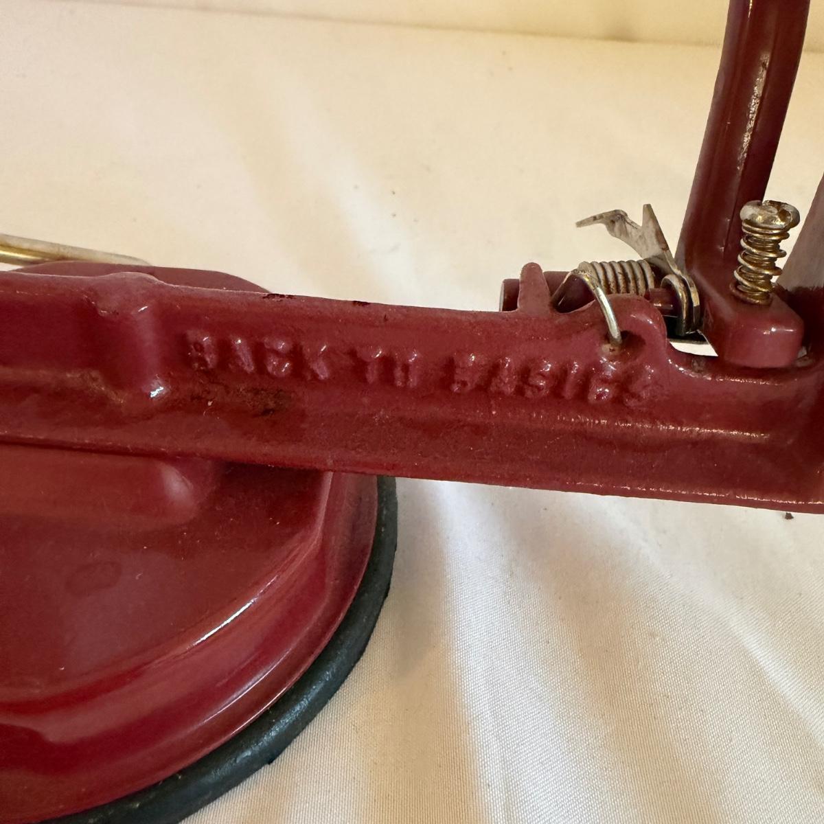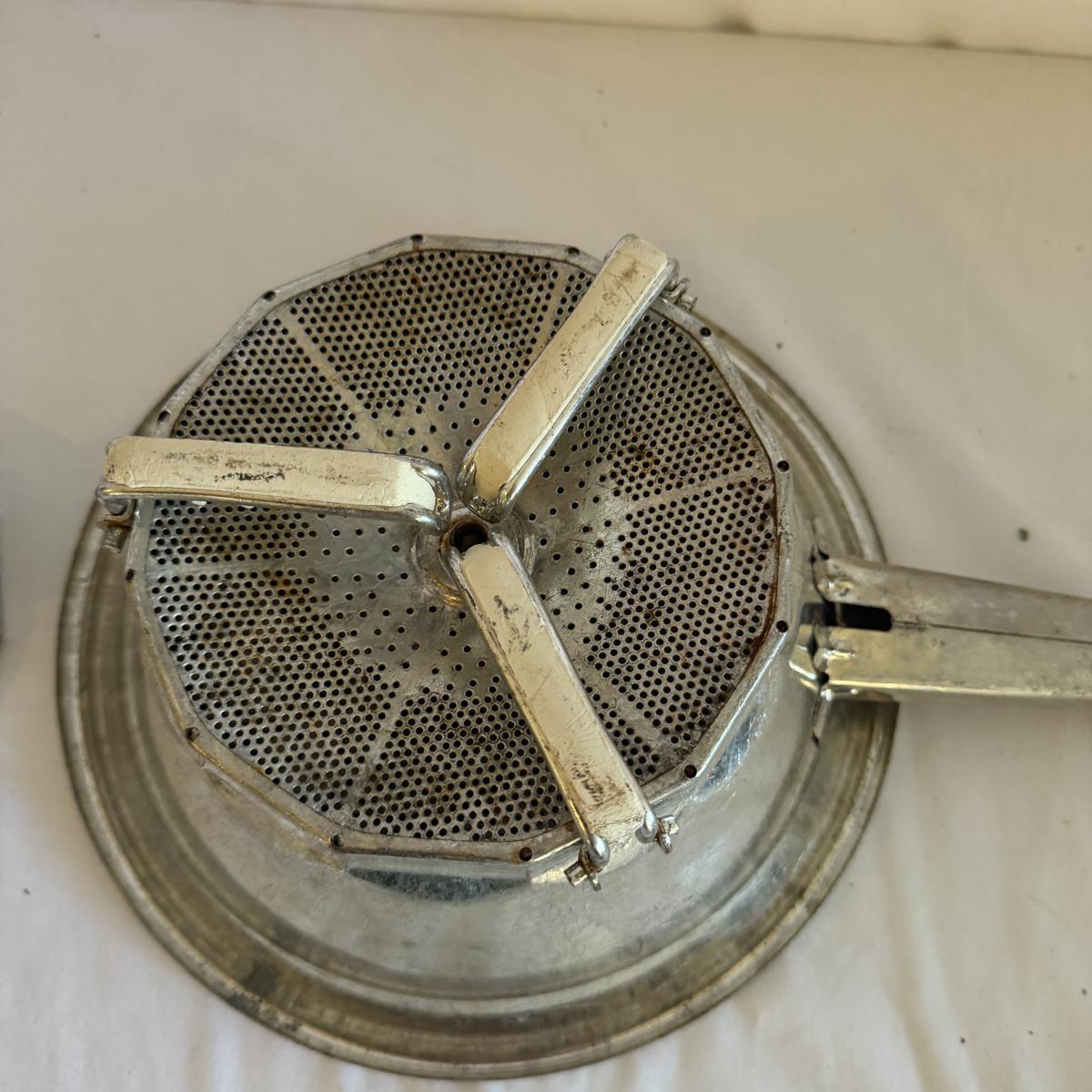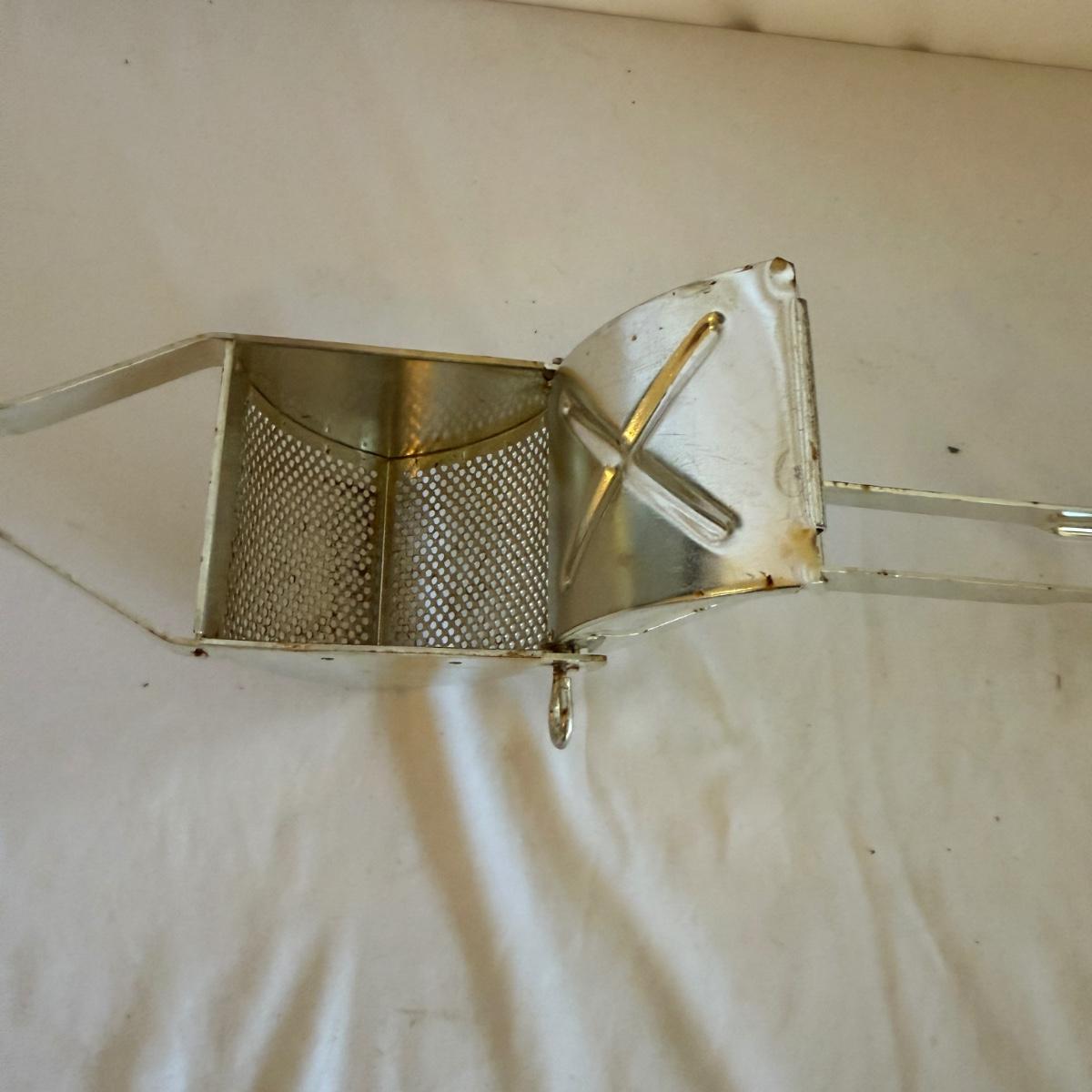 Lot includes a Peel Away Apple peeler, potato ricer, thermometer, wooden rolling pin, two fruit ballers and a Moulin-Legumes food mill. Apple peeler measures 12” x 4” x 5”H.