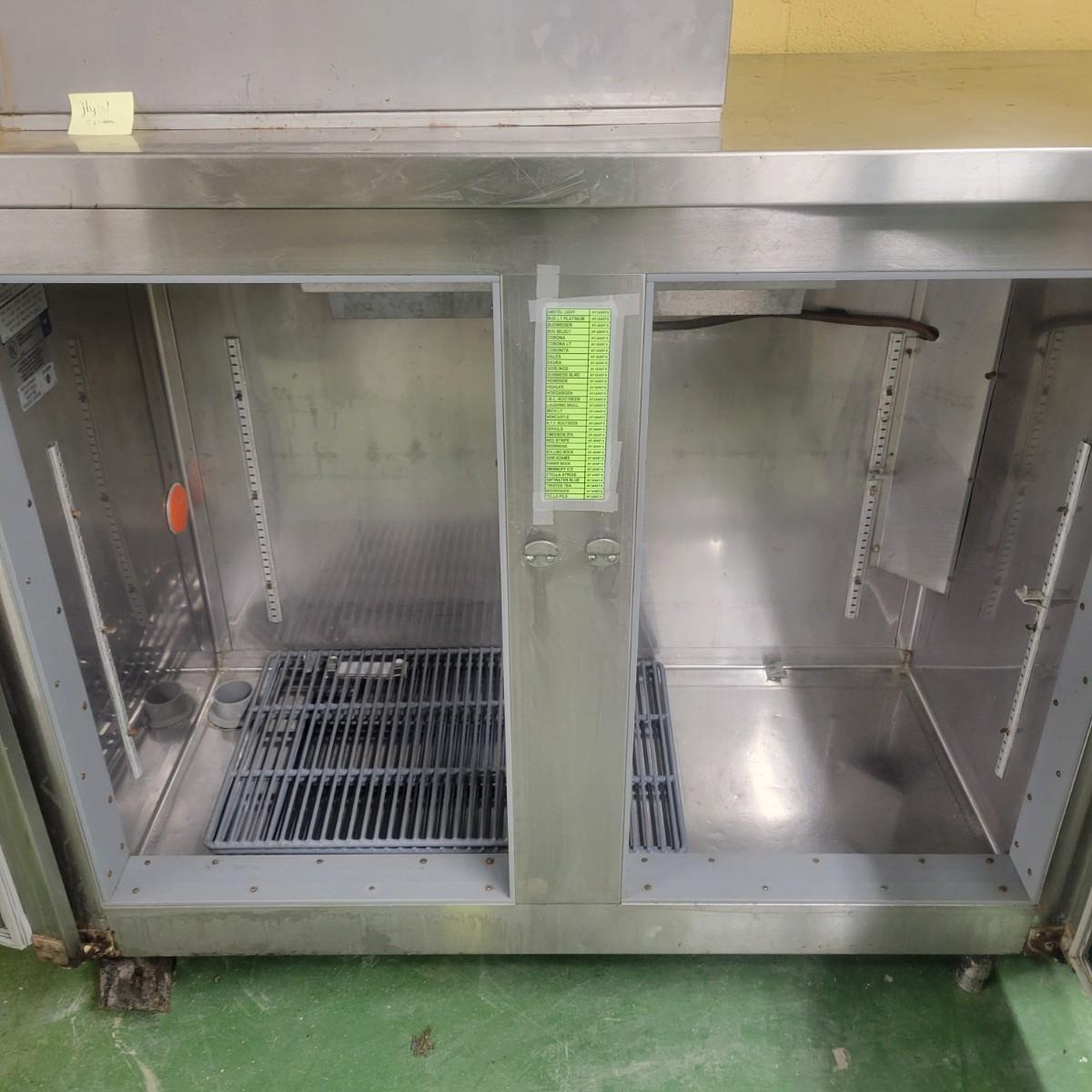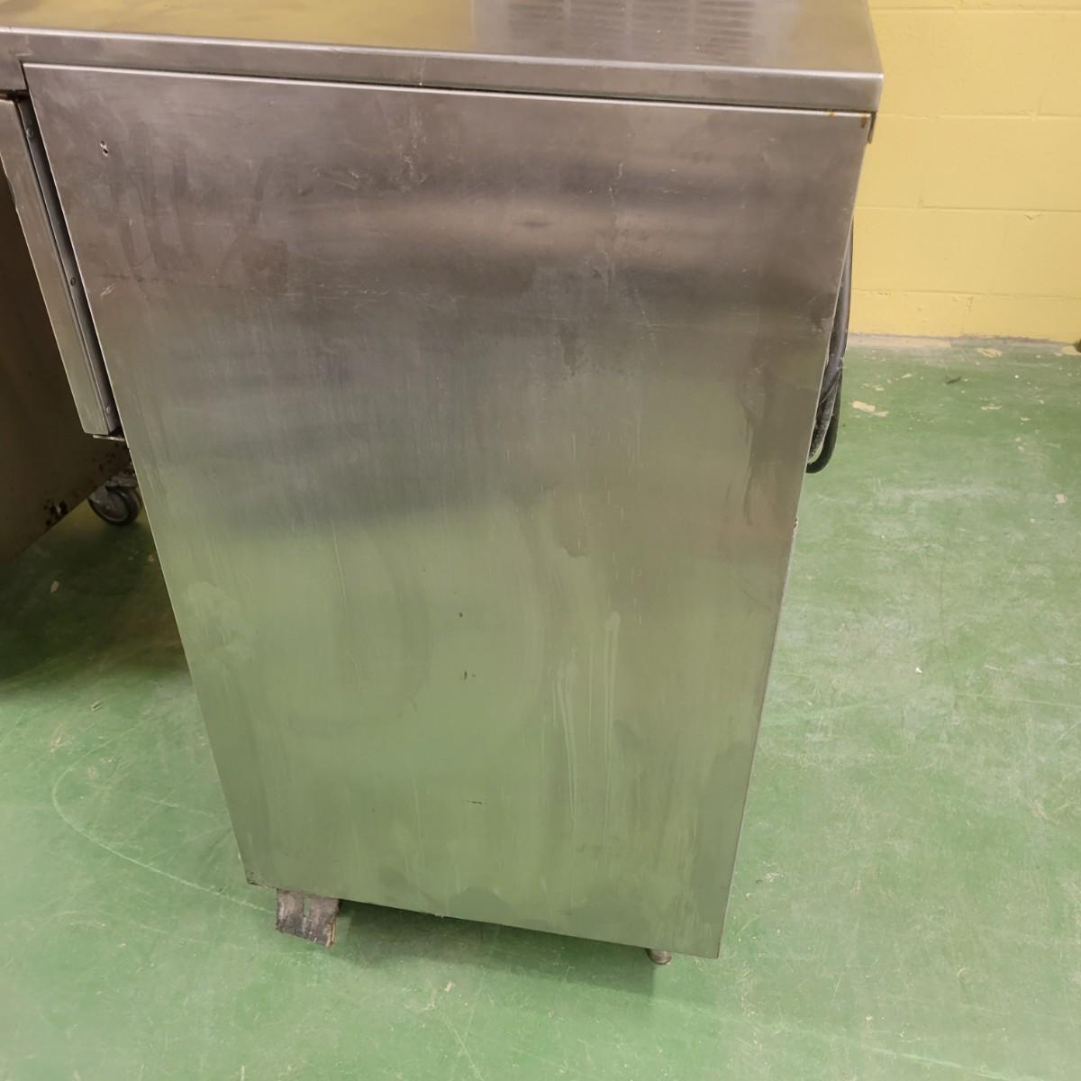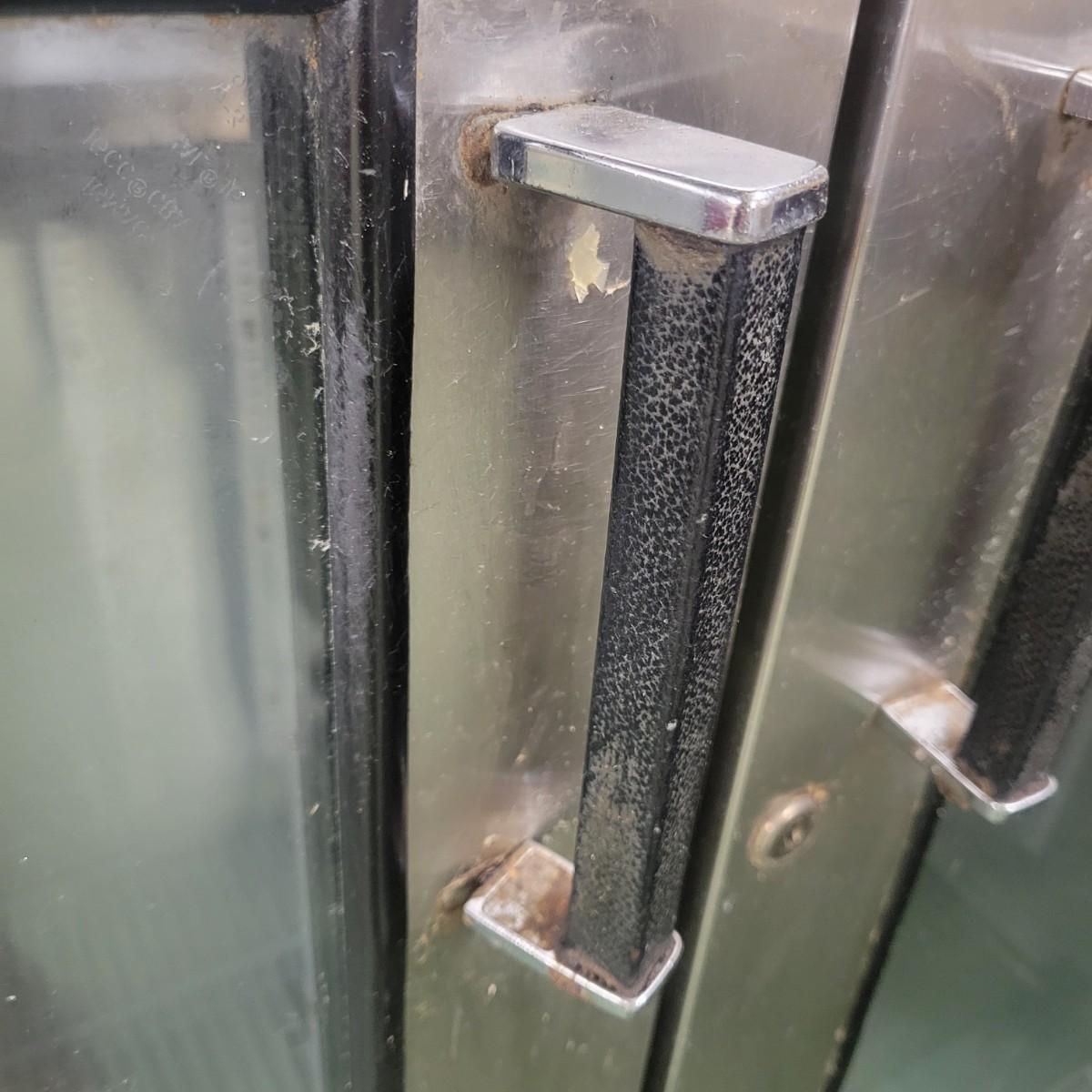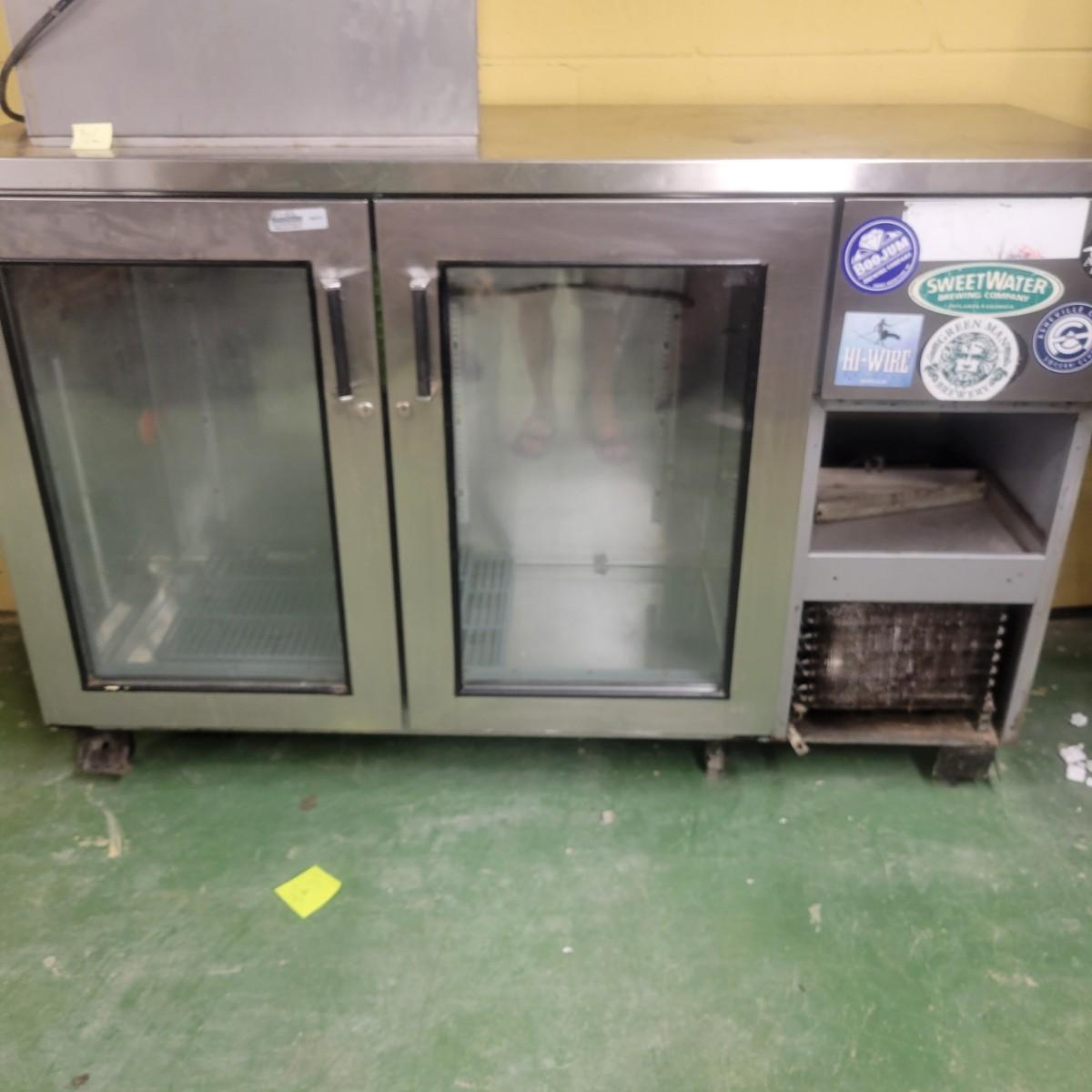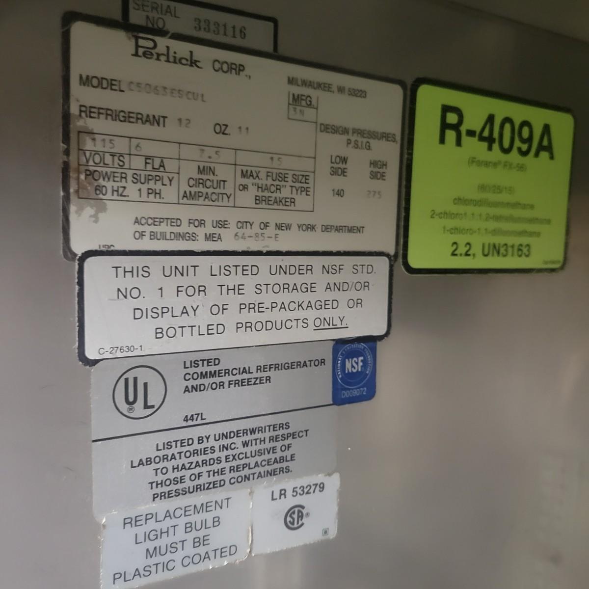 Perlick commercial refrigerator in functioning condition as it has been used in a professional kitchen for years. Item could not be tested, but consigner stated that it works. Structurally sound, but does have a variety of cosmetic blemishes. Some rust, holes in the stainless steel top from where taps were installed and stickers. One handle is bent, see attached pictures. Includes 3 coated wire shelves. Two door refrigerator area measures approximately 43" x 17" x 32" and the door openings measure approximately 18" x 29". Whole unit measures approximately 64" x 24" x 42". Item on top of refrigerator is not included, but is for sale in the auction. This is a large heavy piece and will require help to load. Unit does not have wheels. There is easy access to load this item into your vehicle through a door in the room it is located in to the parking lot. It will not have to be moved up or down any stairs. Local pickup only