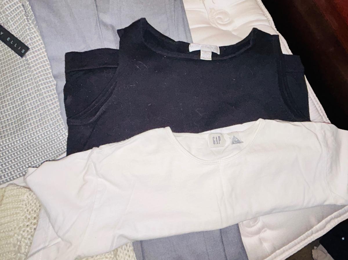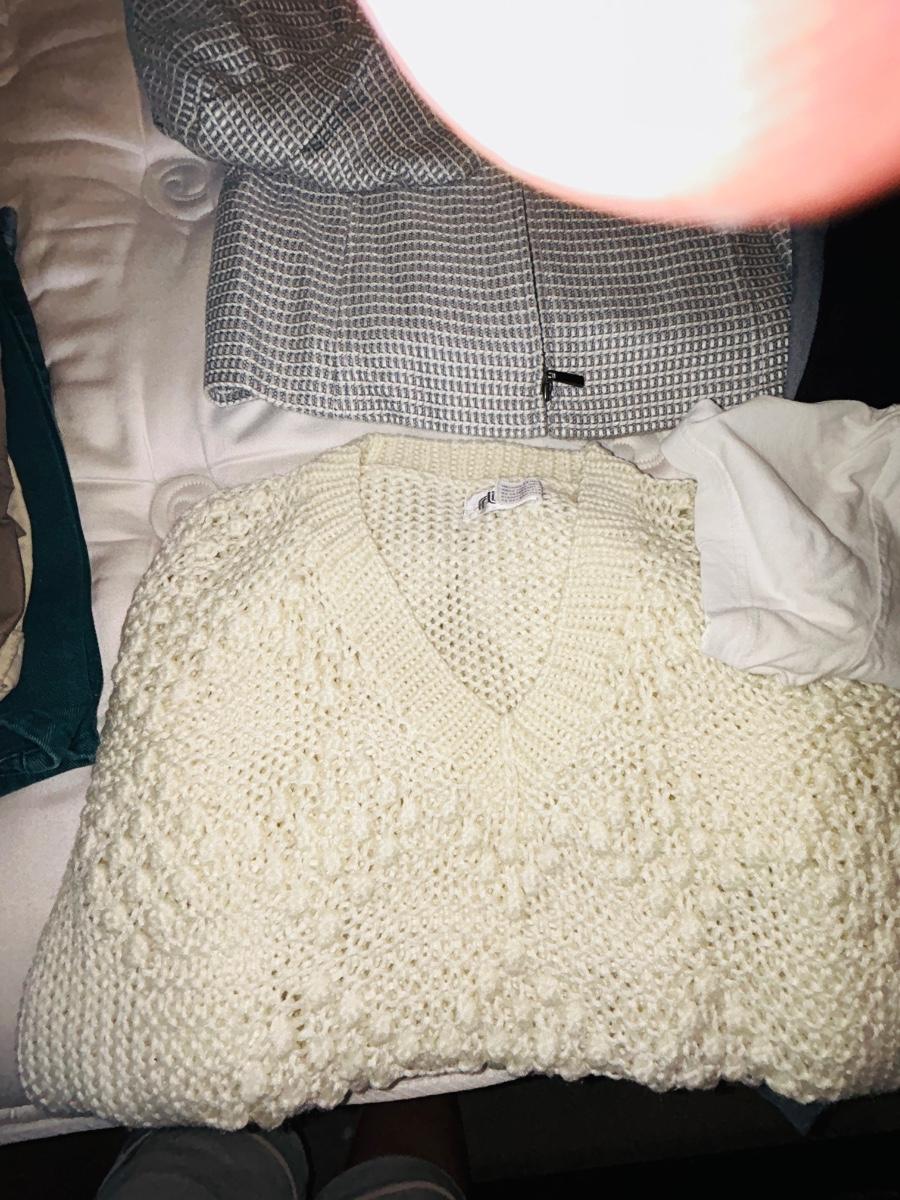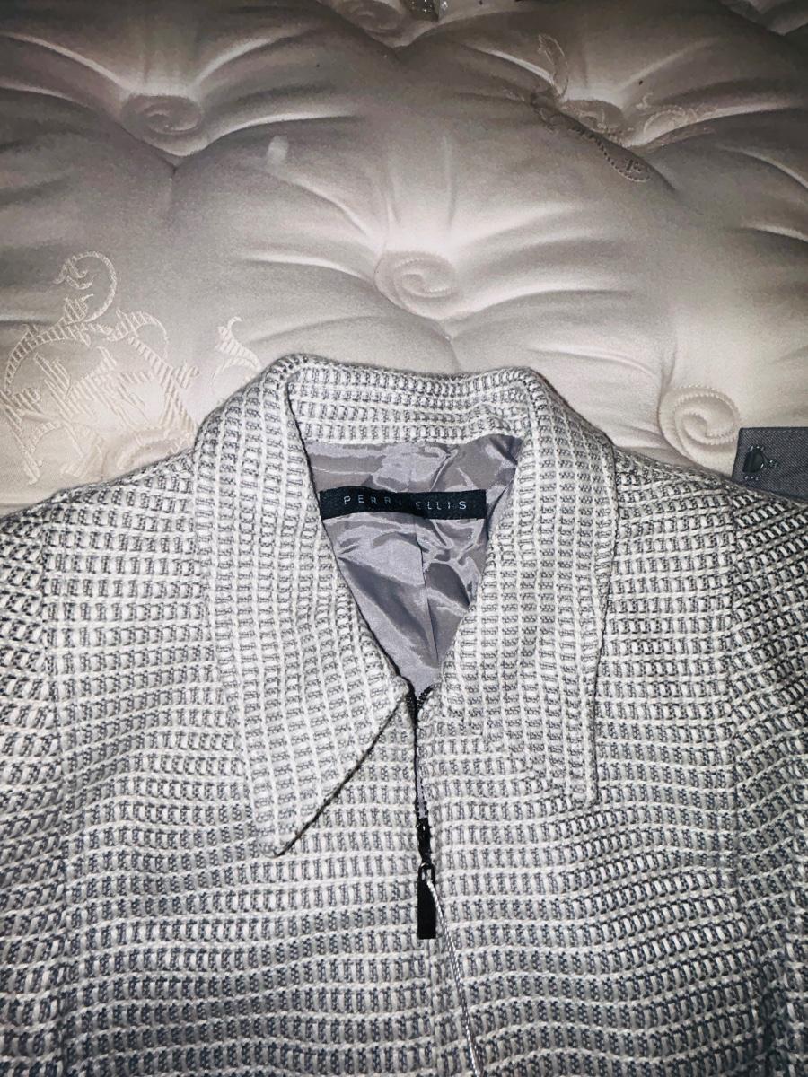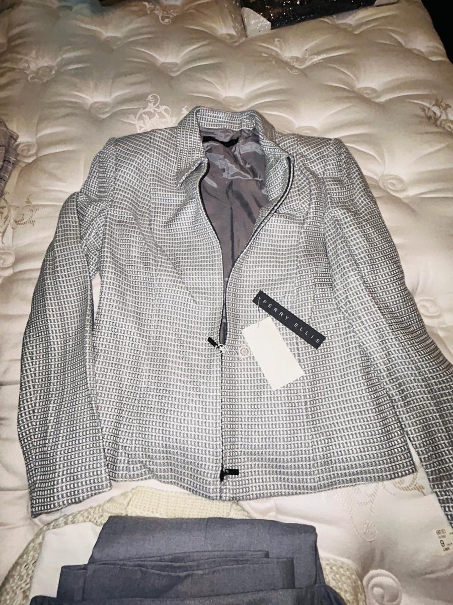 PERRY ELLIS 2 PC SUIT (SIZE 6) , MED SWEATER AND SMALL SHIRTS