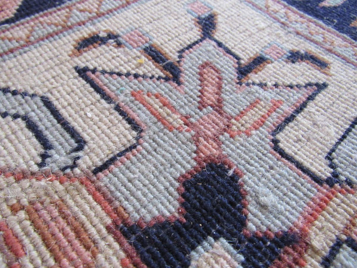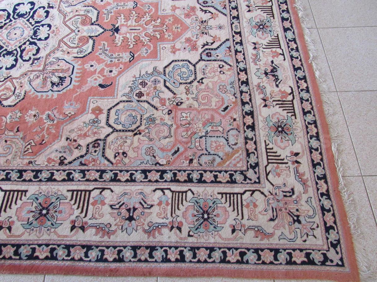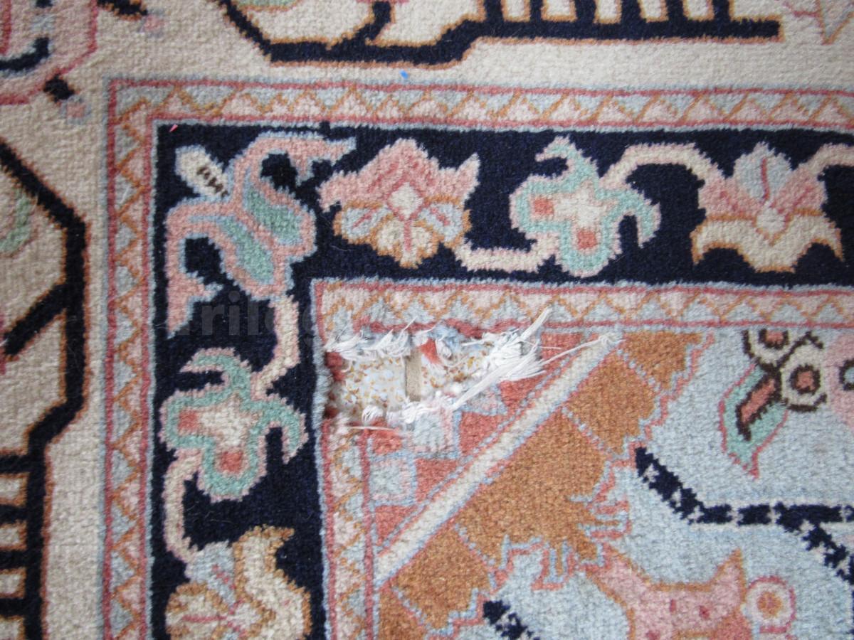Persian Heriz hand-knotted wool rug, signed. Mauve. giant hole - discounted for damage